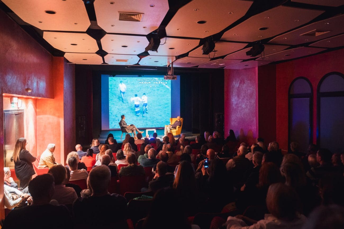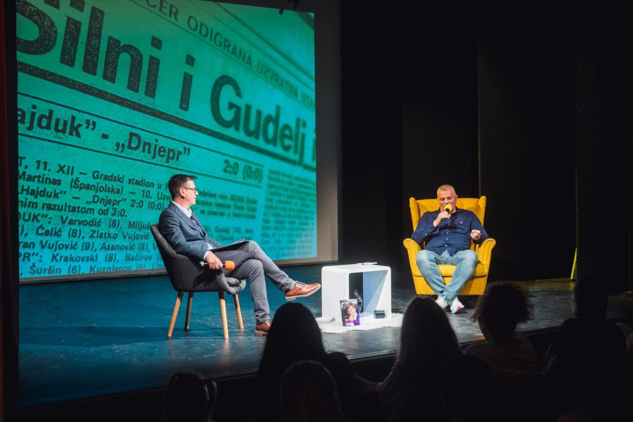 Nekadašnji kapetan Hajduka, Ivan Gudelj, otvorio je večer recitacijom Jesenjinova stiha “Jesʼ l’ živa, staričice moja...”, a potom je publiku podsjetio na blistavu, naglo prekinutu karijeru: od debija u bijelom dresu 1977. do 362 nastupa, 93 pogotka i statusa najboljeg juniora Europe, sve dok mu hepatitis B u 26. godini nije oduzeo teren. U međuvremenu je odbio ponude najvećih klubova i mjesto u reprezentaciji svijeta, postao simbol splitskoga nogometa i trajna inspiracija navijača koji mu i danas plješću golovima iz 1981. – poput hat-tricka Valenciji.
