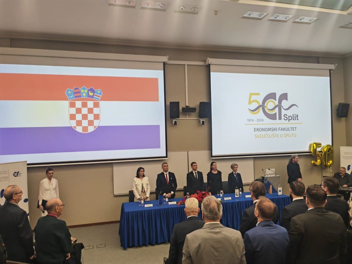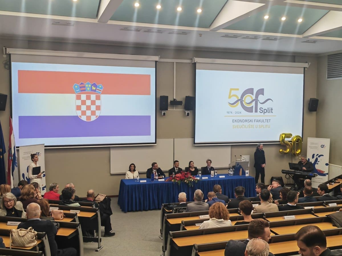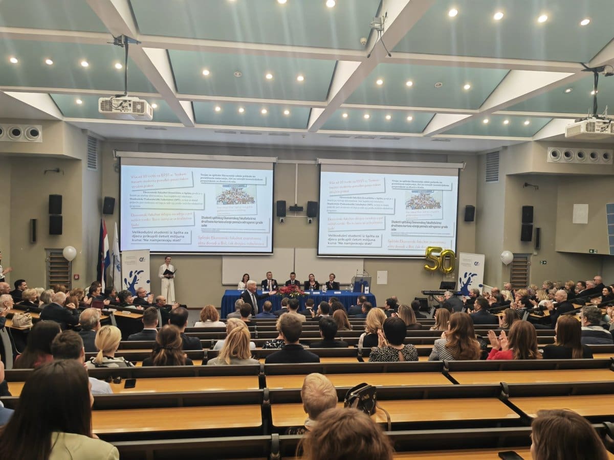 Ekonomski fakultet je u utorak, 26. studenog, proslavio veliki jubilej - pola stoljeća postojanja. U prigodnom govoru dekan Fakulteta prof. dr. sc. Bruno Ćorić istaknuo je kako je proslava 50. obljetnice prigoda se prisjetimo povijesti i upremo pogled u budućnost.