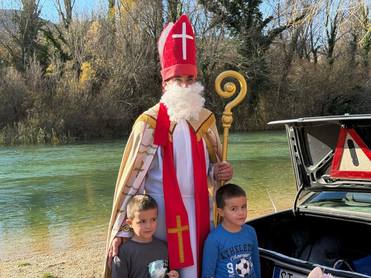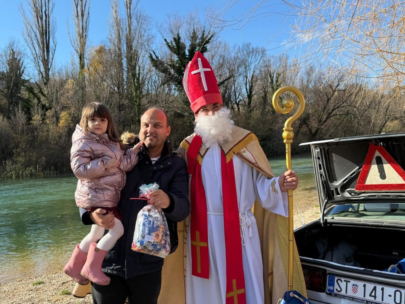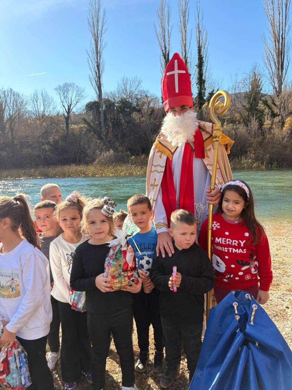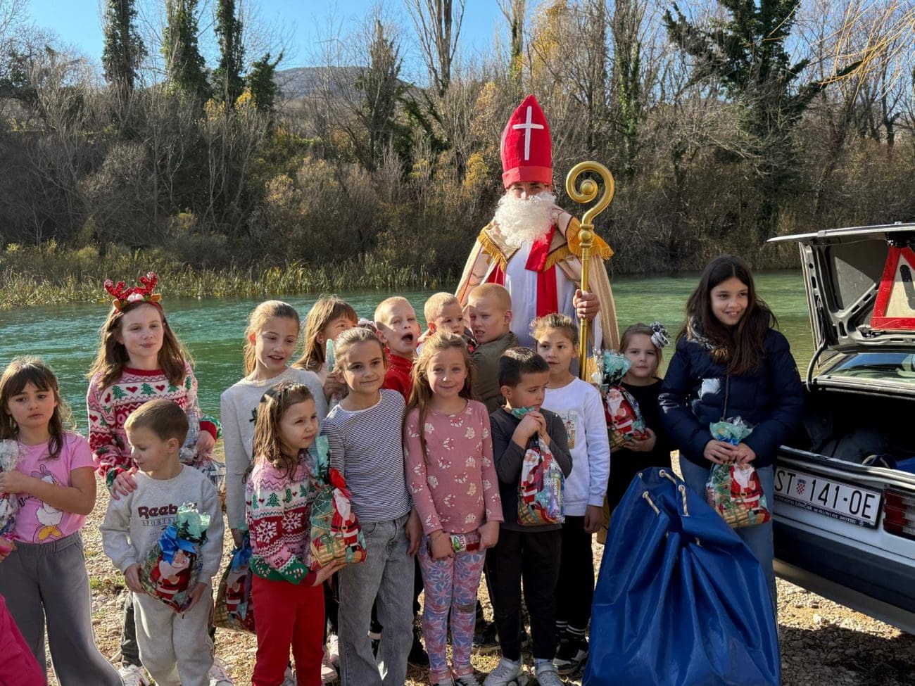 Slogom mještana Blata na Cetini, jučer ujutro je na Popovom otoku, uz samu obalu rijeke Cetine, dočekan sveti Nikola. U gotovo filmski romantičnoj atmosferi uz žubor Cetine, njihovog nacionalnog parka, milovanje grana vrba, patkice u kanjonu i svježi planinski zrak s Mosora, sv. Nikola iz crvenog kamiona pozdravljao je radosne mališane, a potom im je podijelio ukupno stotinu darova. Od peteromjesečne, najmlađe, Judite do četrnaestogodišnjih osmaša, sva ova blatska dica nisu skidala osmijeh s lica.