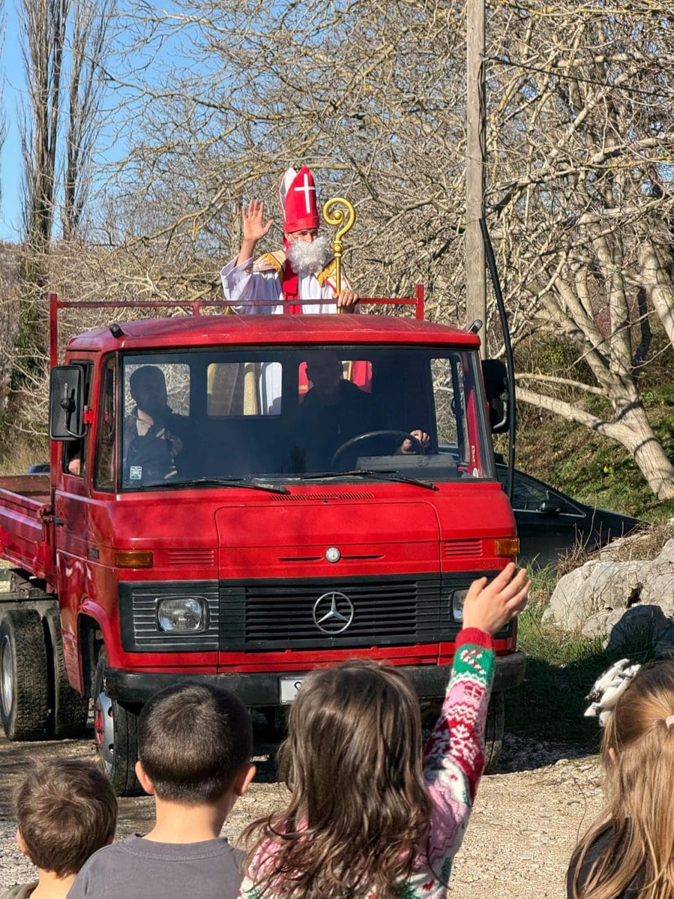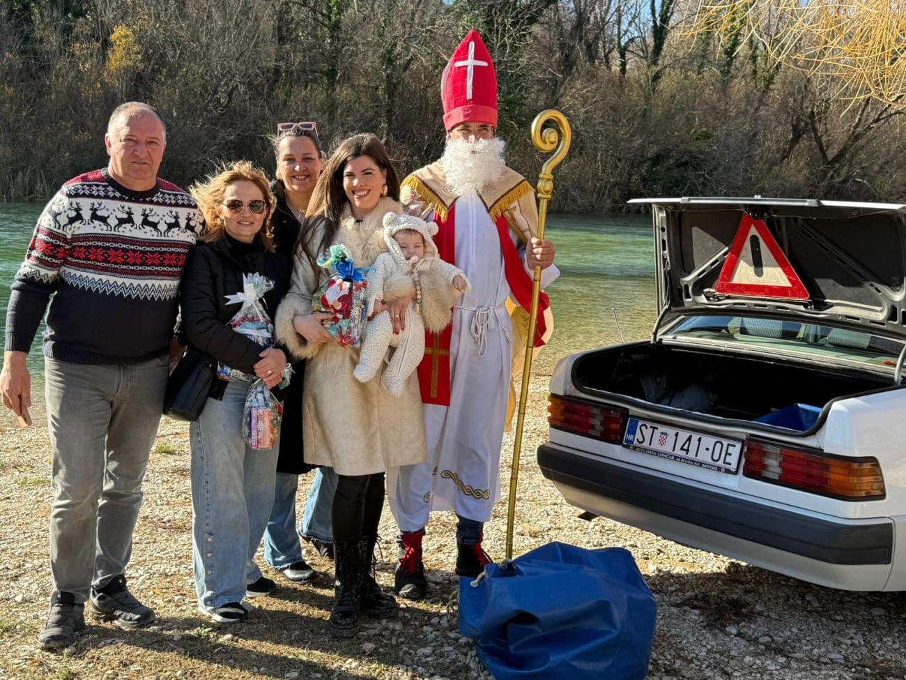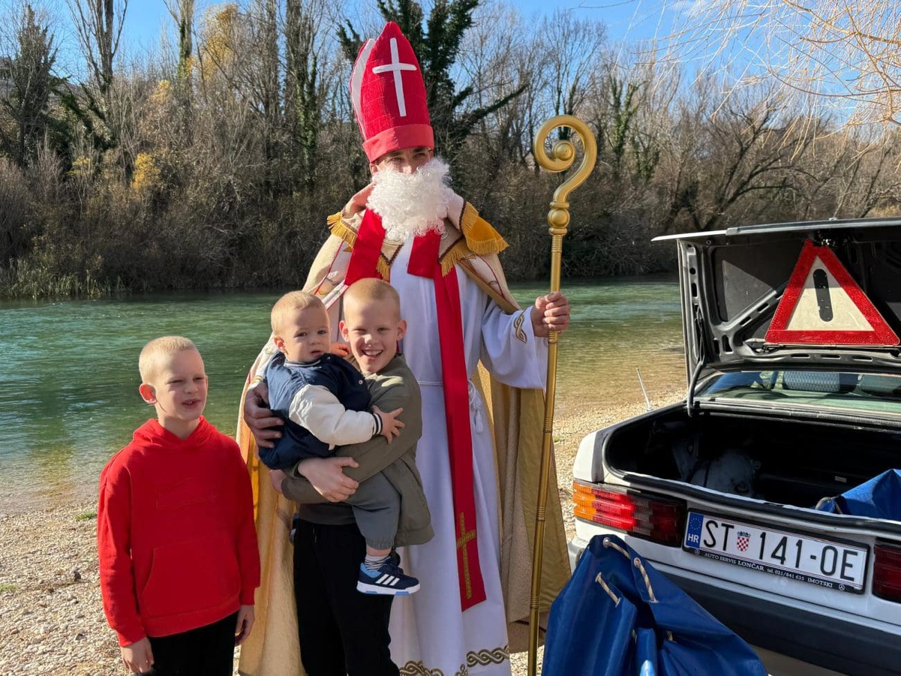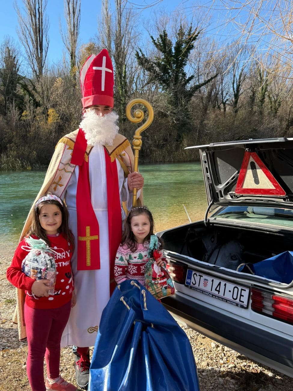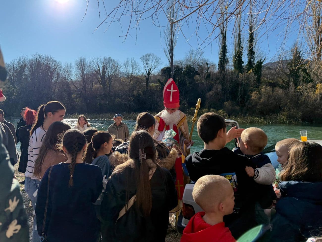 Slogom mještana Blata na Cetini, jučer ujutro je na Popovom otoku, uz samu obalu rijeke Cetine, dočekan sveti Nikola. U gotovo filmski romantičnoj atmosferi uz žubor Cetine, njihovog nacionalnog parka, milovanje grana vrba, patkice u kanjonu i svježi planinski zrak s Mosora, sv. Nikola iz crvenog kamiona pozdravljao je radosne mališane, a potom im je podijelio ukupno stotinu darova. Od peteromjesečne, najmlađe, Judite do četrnaestogodišnjih osmaša, sva ova blatska dica nisu skidala osmijeh s lica.