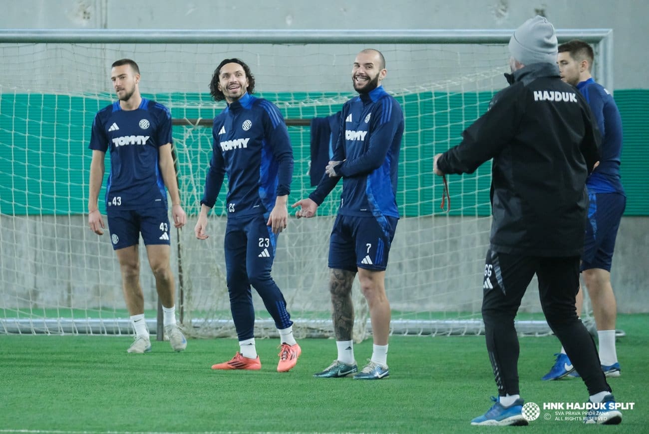 Prvi trening u novoj godini započeo je točno u 10 sati na pomoćnom terenu, unatoč lošim vremenskim uvjetima, a trajao je nešto više od sat vremena. Kiša nije spriječila momčad da se posveti treningu, a već od ponedjeljka slijedi svakodnevni rad na Poljudu. Nakon početnog razdoblja priprema u Splitu, Hajduk će otputovati u Španjolsku, gdje će u okolici Alicantea odraditi središnji dio priprema, uključujući tri prijateljske utakmice. Protivnici će biti njemački VFL Osnabrück, mađarski Ujpest FC i švedski IF Elfsborg, a utakmice su zakazane za 9., 14. i 15. siječnja.