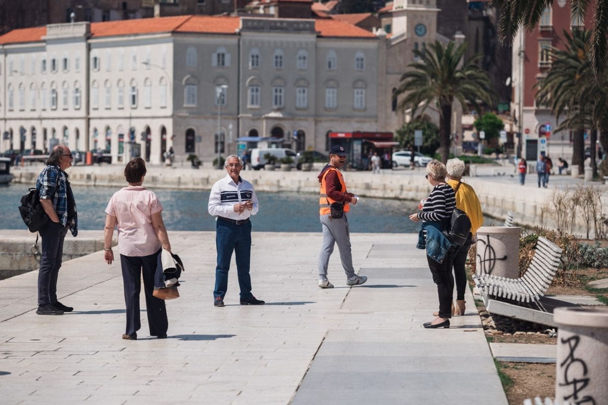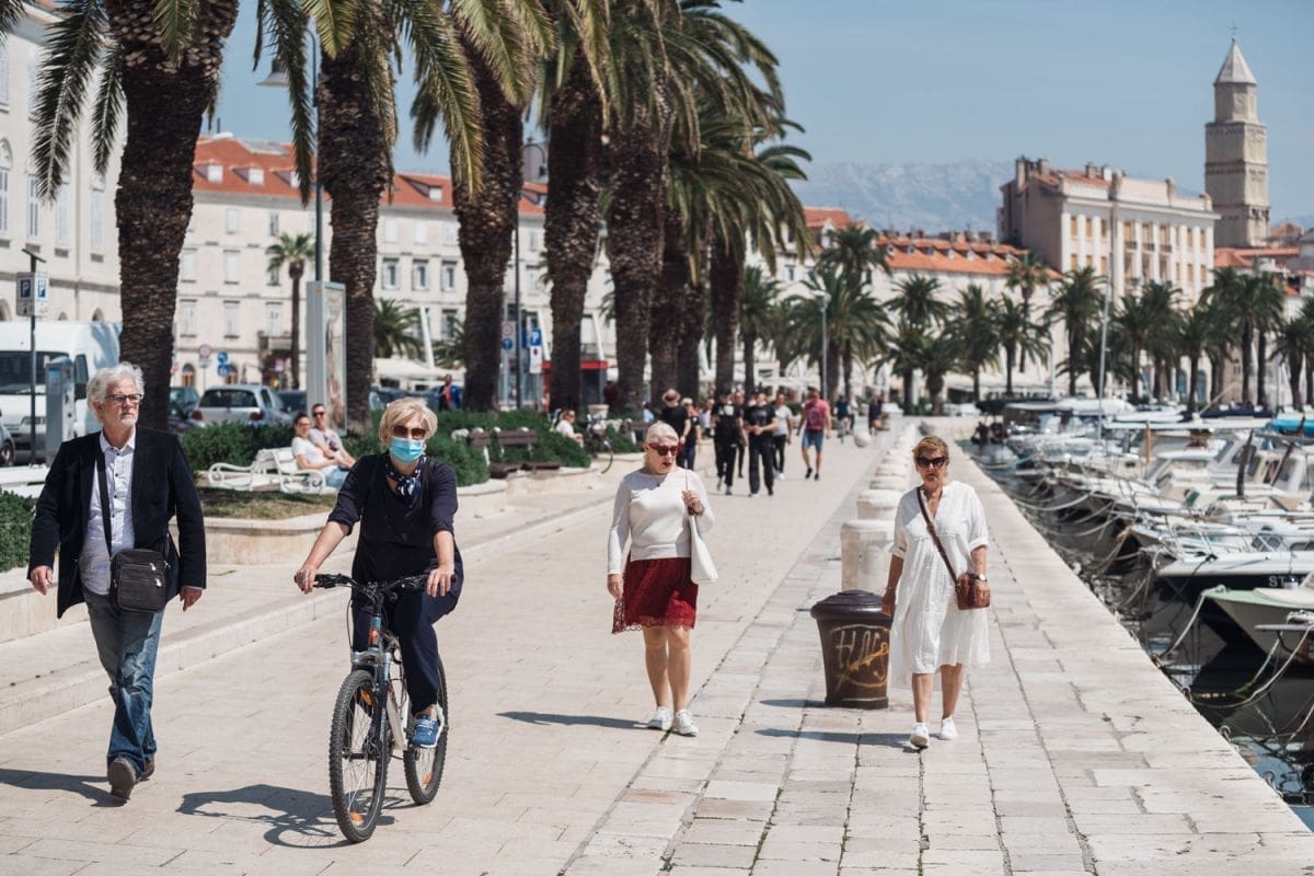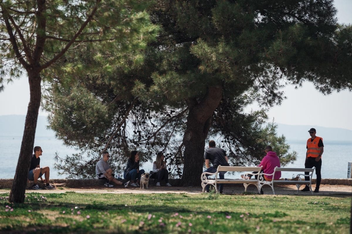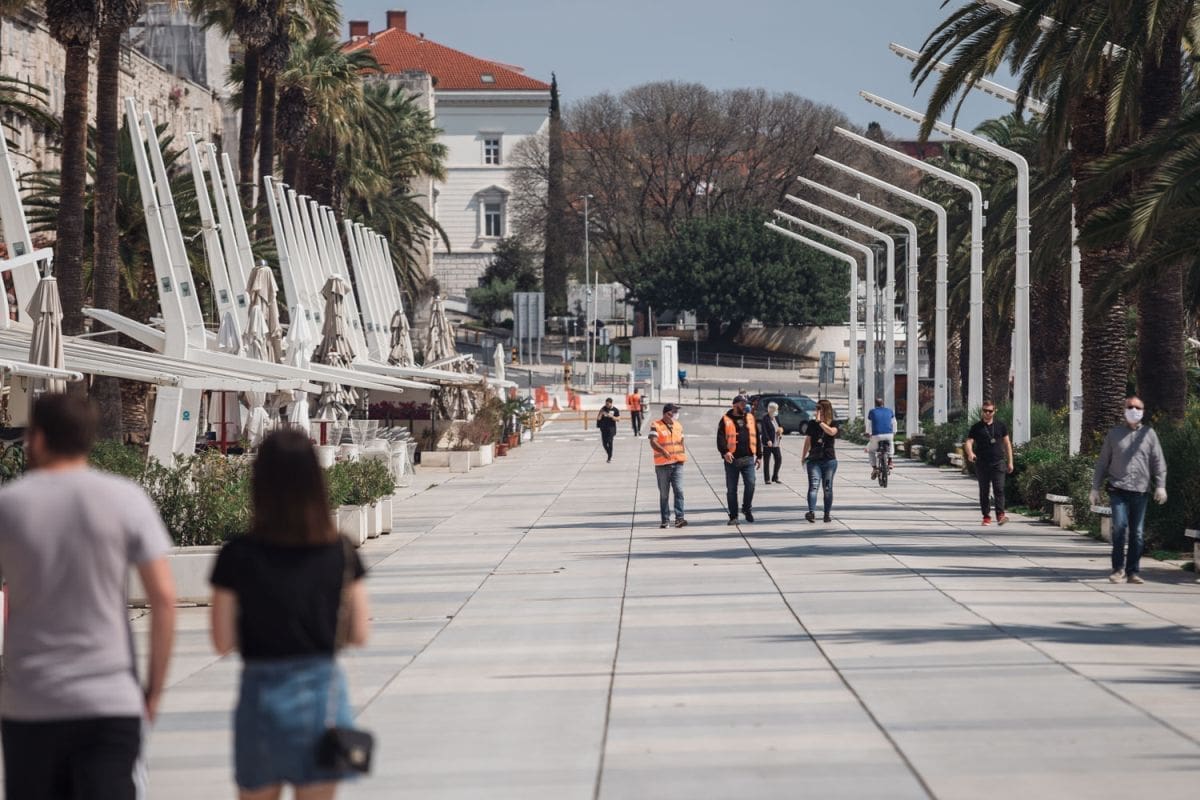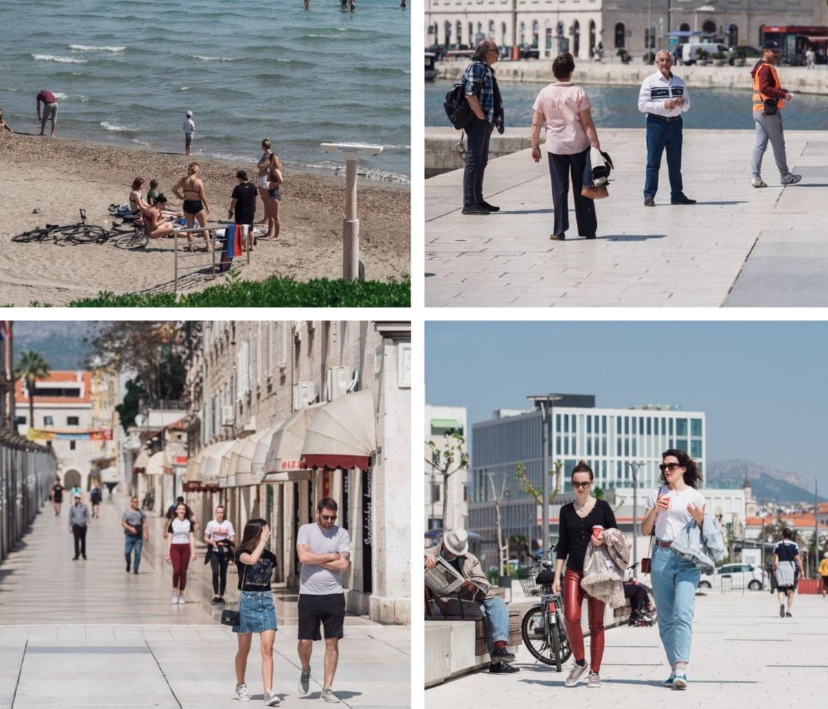 Splitska riva izgleda gotovo kao da nema korone. Voze se bicikli, piju se kavice na klupama, šeta se, djeca se igraju. Neki su čak iskoristili travanjsko sunce za prva sunčanja i kupanja na splitskim plažama. No, kako nam kažu civilni zaštitari, u većini slučajeva se drže propisanih mjera te nemaju neugodnih intervencija.