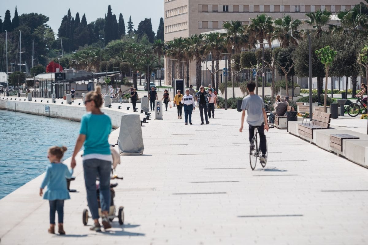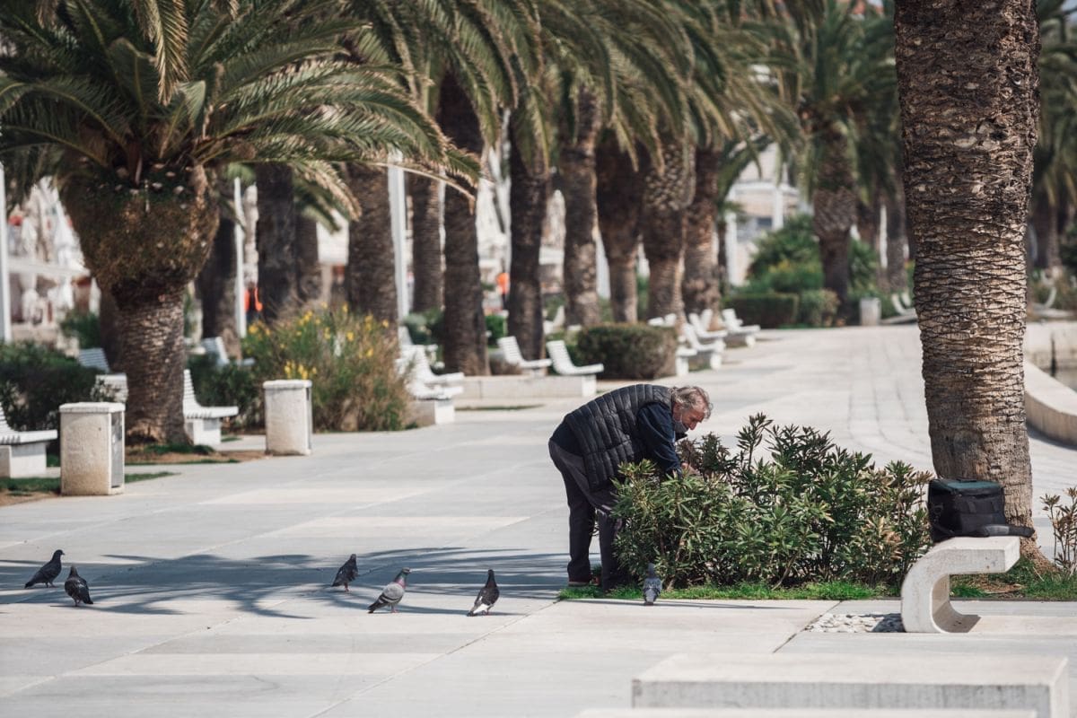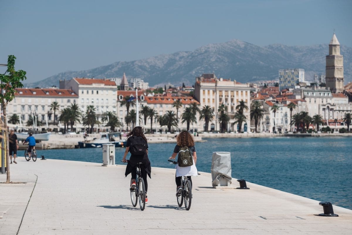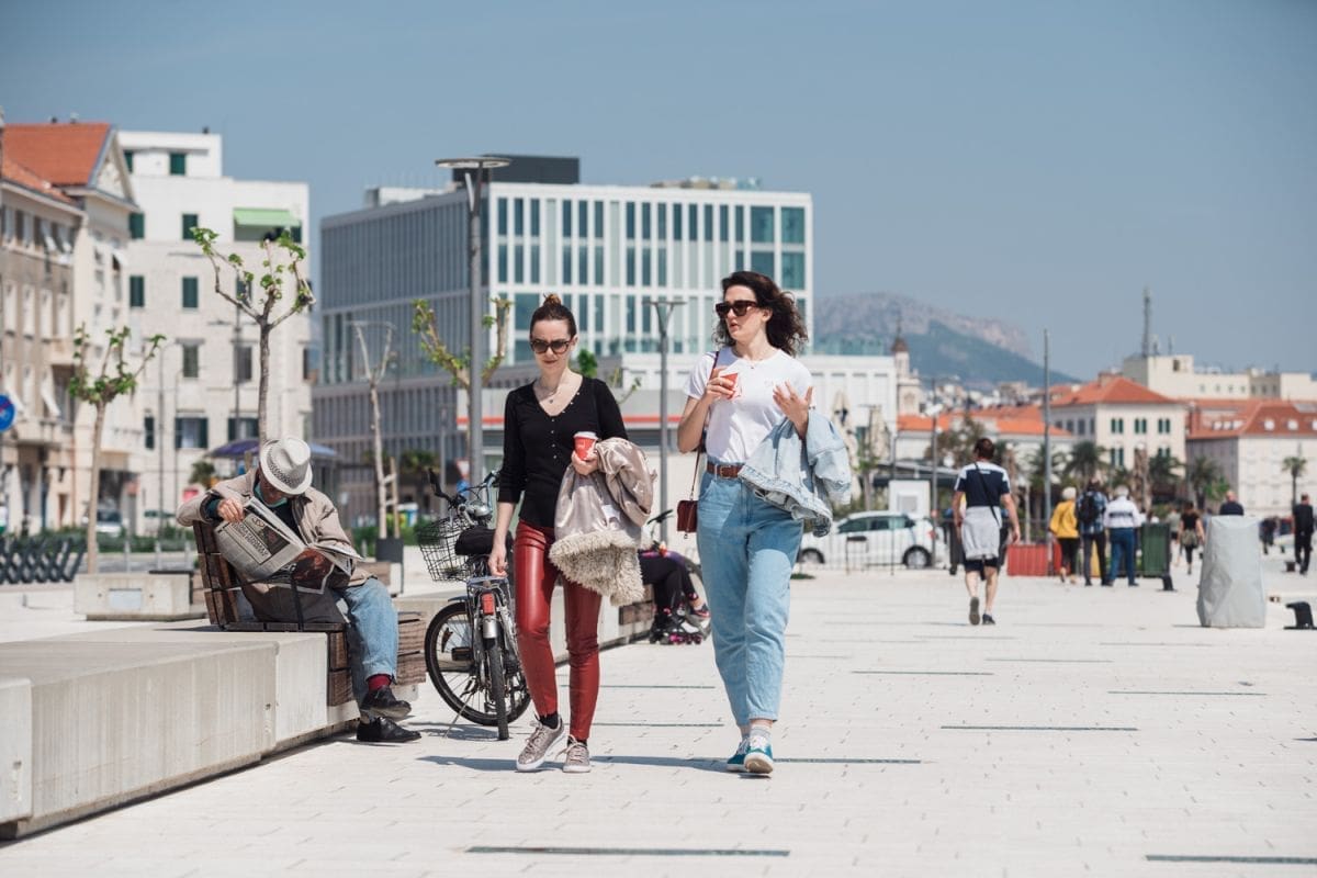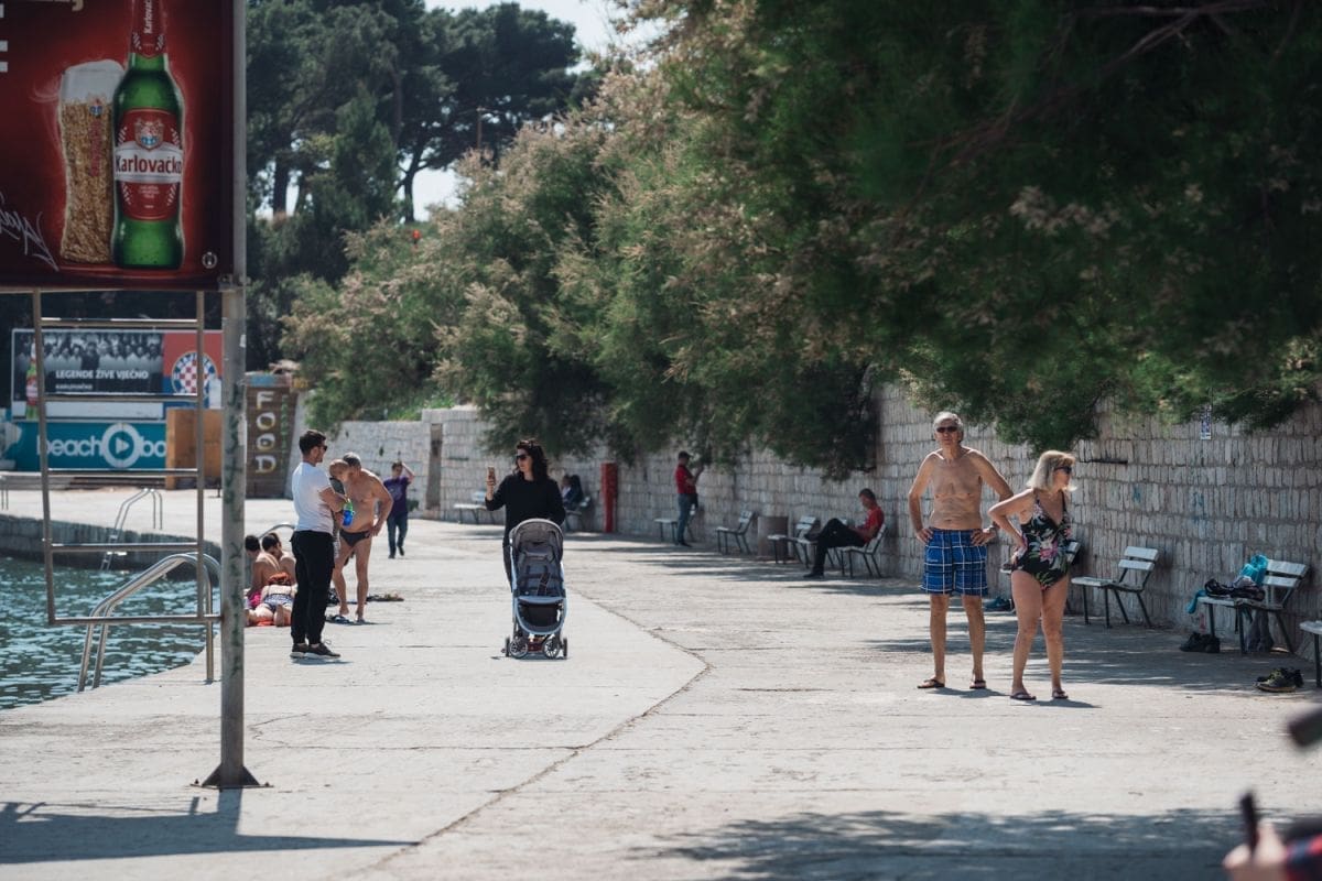 Splitska riva izgleda gotovo kao da nema korone. Voze se bicikli, piju se kavice na klupama, šeta se, djeca se igraju. Neki su čak iskoristili travanjsko sunce za prva sunčanja i kupanja na splitskim plažama. No, kako nam kažu civilni zaštitari, u većini slučajeva se drže propisanih mjera te nemaju neugodnih intervencija.