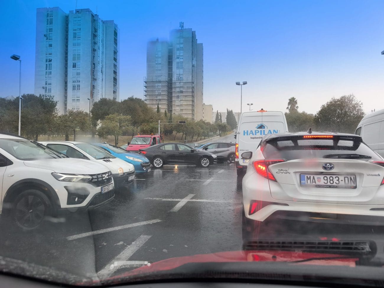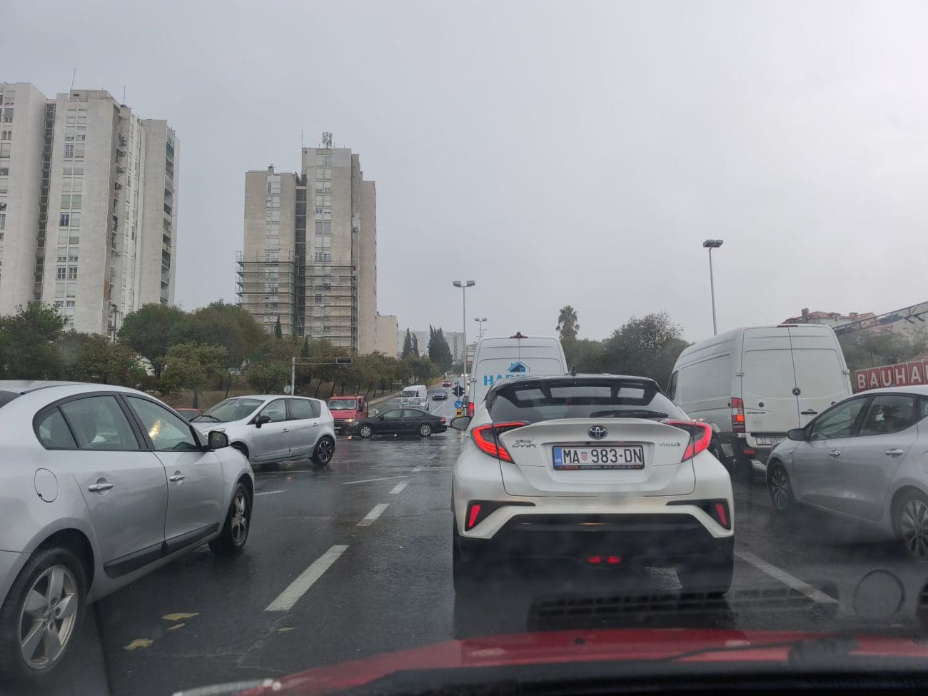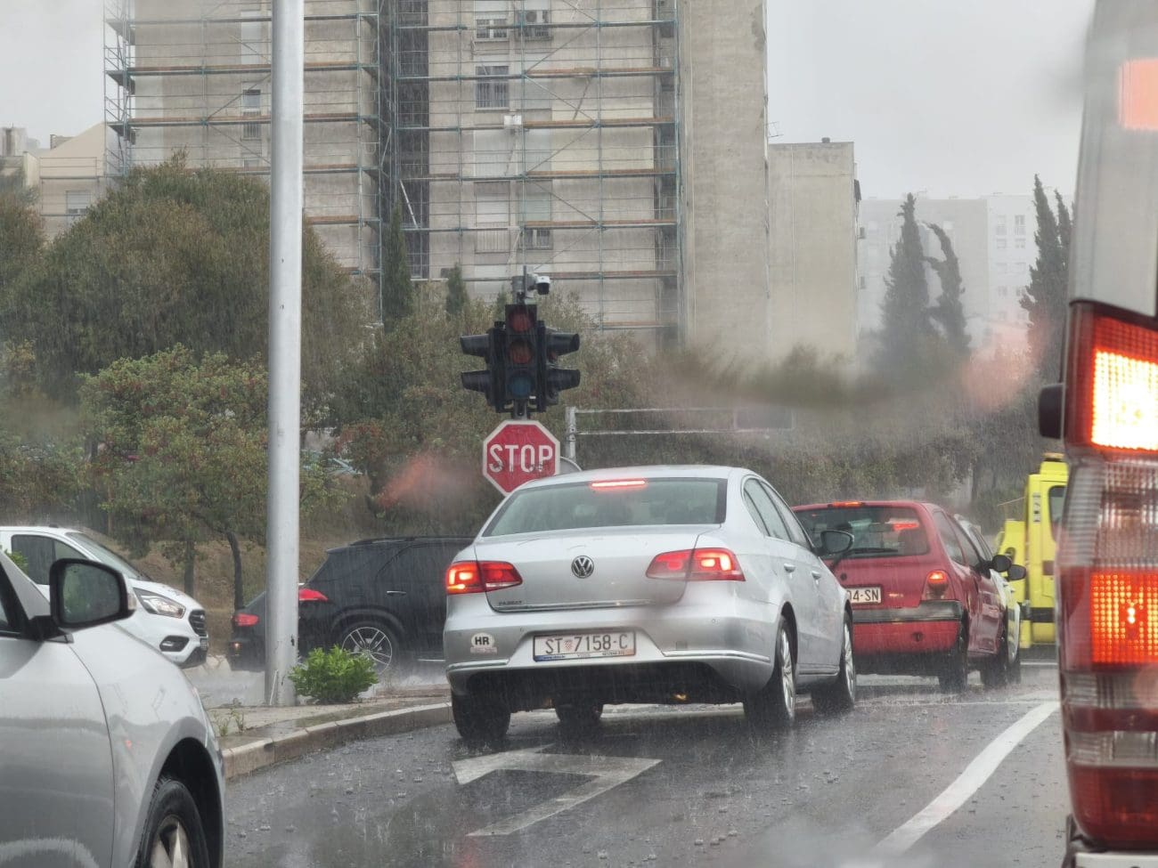 Jako nevrijeme i obilna kiša pogodili su Split i veći dio Dalmacije, uzrokujući velike probleme u prometu. Na gradskim ulicama stvorile su se velike gužve, a vozači su već neko duže vrijeme zarobljeni u kolonama. Situaciju dodatno otežava činjenica da u Splitu ne radi nekoliko ključnih semafora, što stvara potpuni prometni kaos na raskrižjima.