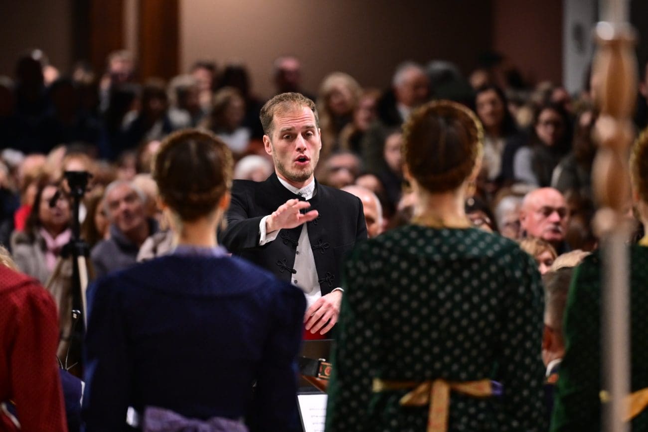 Glazbenu večer dodatno je obogatila folklorna suita za ženski zbor – izbor božićnih pjesama iz Vinišća kod Trogira. Kajkavsko govorno područje predstavljeno je pjesmama iz Prekmurja, Međimurja i Gradišća, dok su s otoka Hvara izvedene odabrane kolende u stilu klapskog pjevanja, što je publika posebno toplo dočekala.