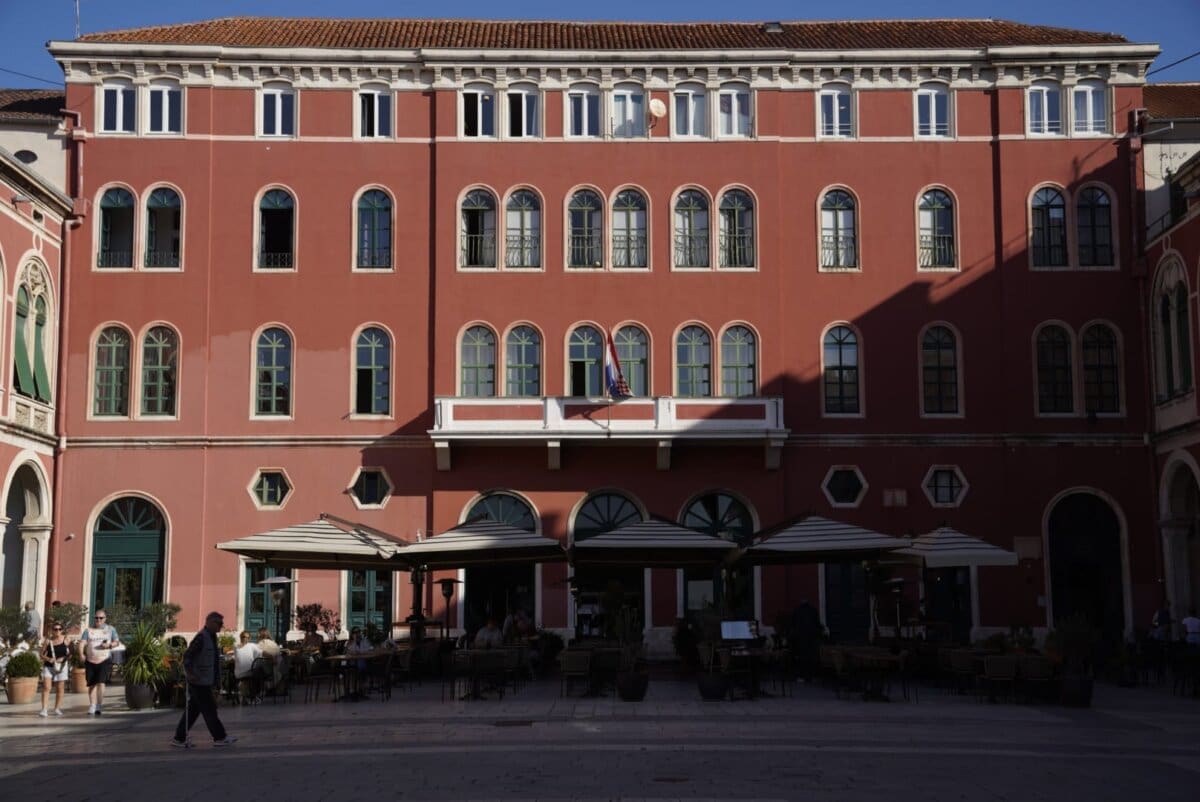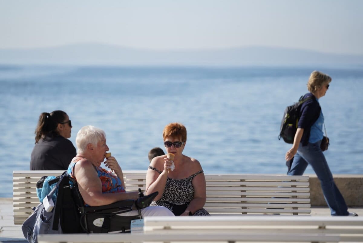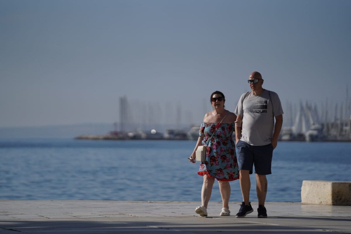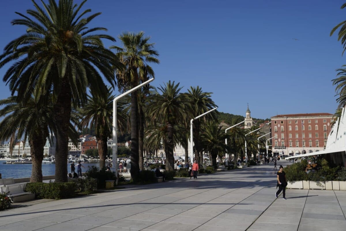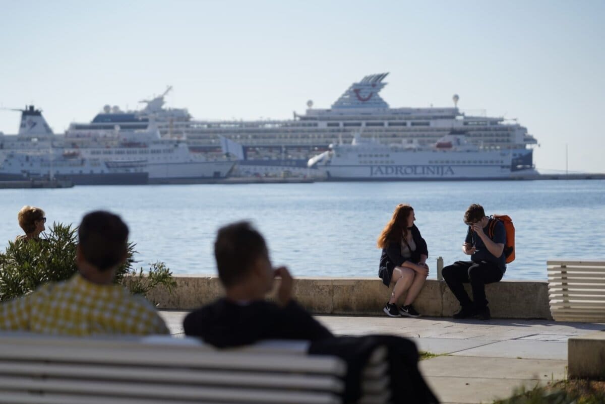 Splitska Riva, najpoznatija šetnica u gradu pod Marjanom, i ovog je jutra bila puna života. Iako je radni dan, lijepo vrijeme izmamilo je mnoge Splićane, ali i turiste, na đir. Ugodna temperatura između 20 i 22 stupnja Celzijeva, uz sunce koje je neprestano grijalo, stvorila je idealne uvjete za uživanje na otvorenom.