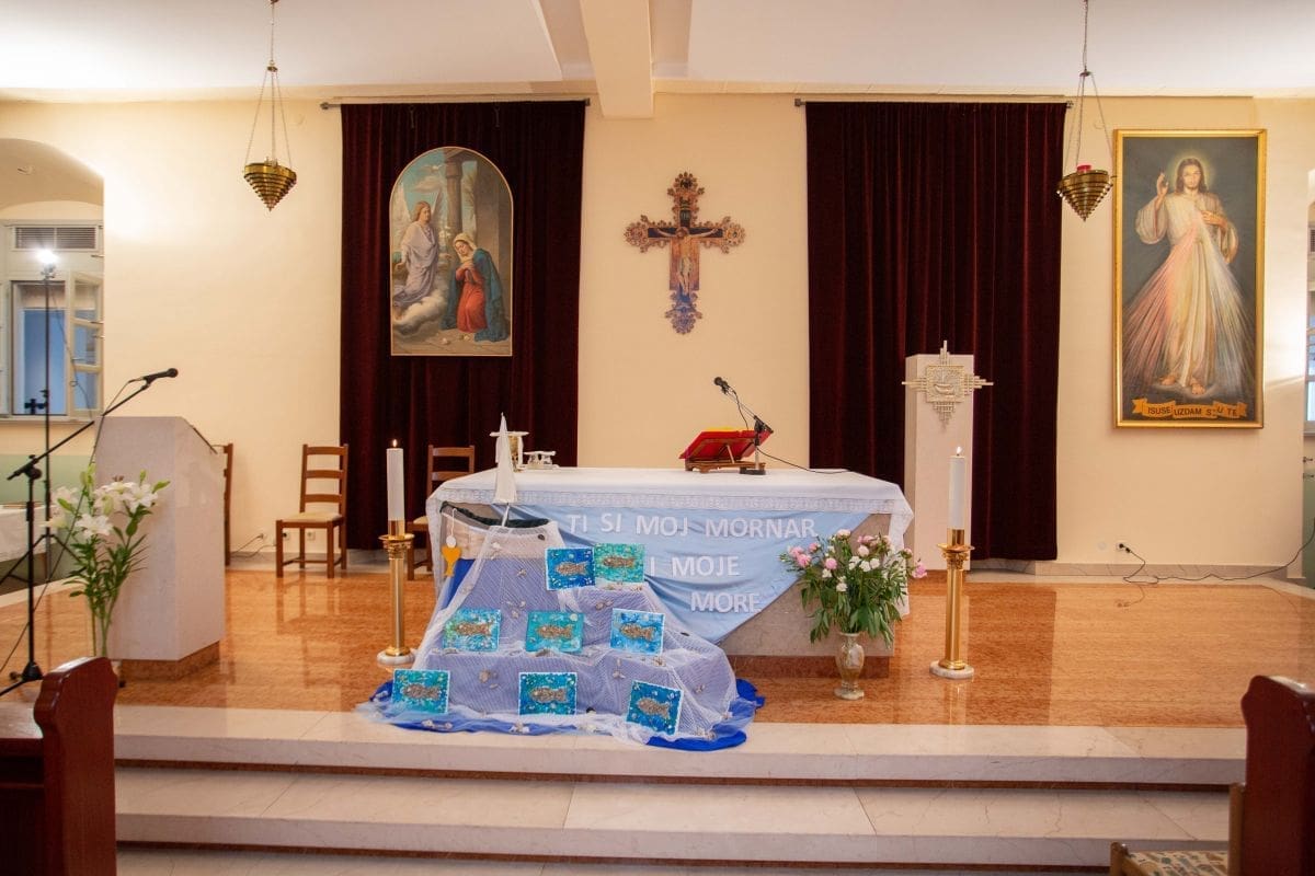 Roditelji, braća i sestre prvopričesnika ispunili su radošću i ponosom sjemenišnu kapelu, a oltar je bio uređen likovnim radovima djece iz Centra za autizam. Sve je to uz svesrdnu pomoć roditelja organizirala njihova vjeroučiteljica Marija Bašić. Misno slavlje svojim pjevanjem uljepšala je Maja Antoš uz pratnju na gitari Roberta Turčinova, oboje su iz VIS-a „Darovi Duha“ župe Gospe od Ružarija u Splitu.