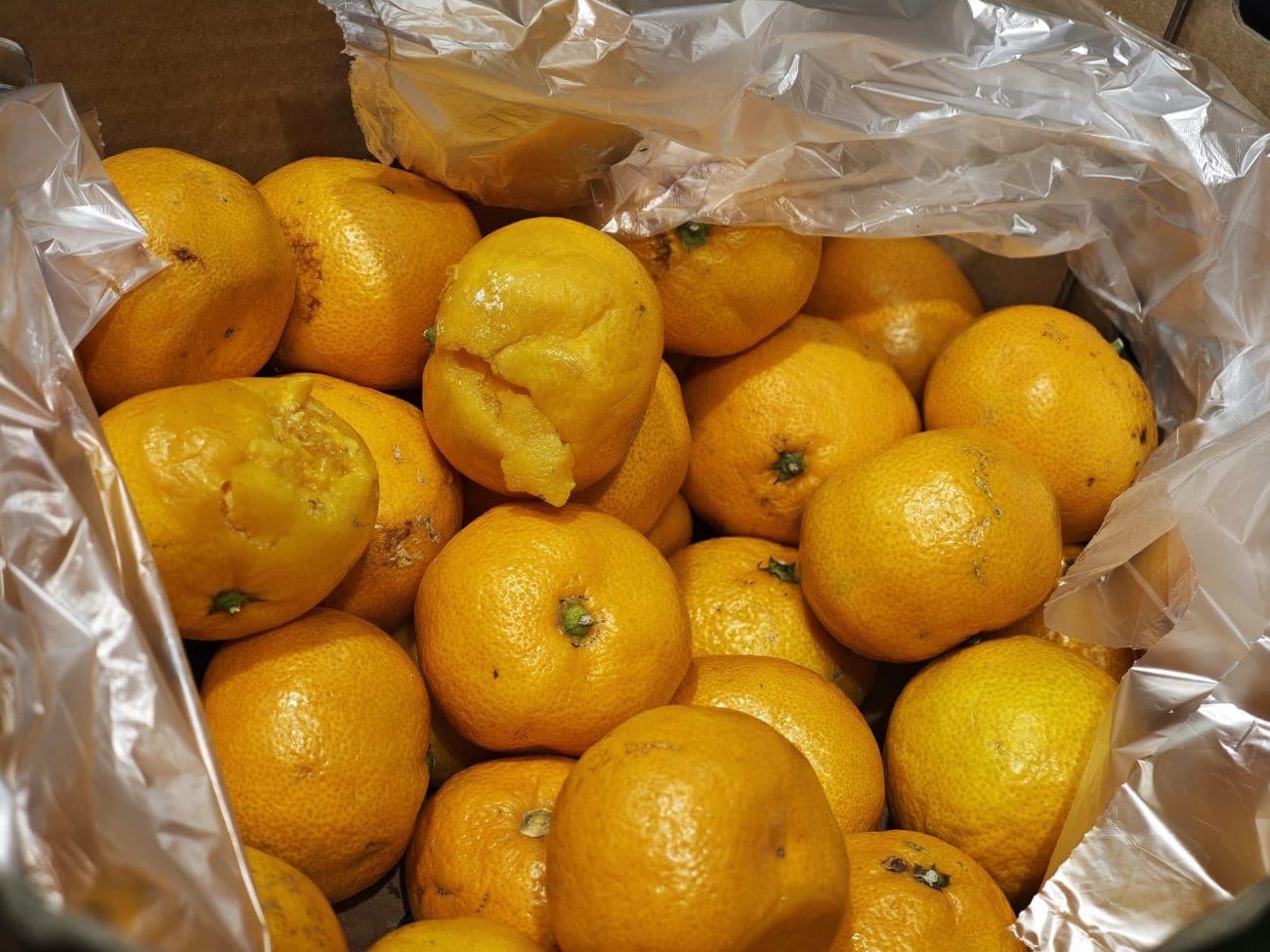 Na fotografiji koju nam je poslao zabrinuti kupac jasno se vidi kutija mandarina obložena vrećicom, u kojoj je dio plodova u lošem stanju. Nekoliko mandarina ima ulegnuća i tamne mrlje, dok su dvije gotovo potpuno raskašene – kora je napukla, a unutrašnjost izgleda kašasto i raspada se na dodir. Vidljivi su i tragovi kvarenja koji upućuju na napad gljivica.