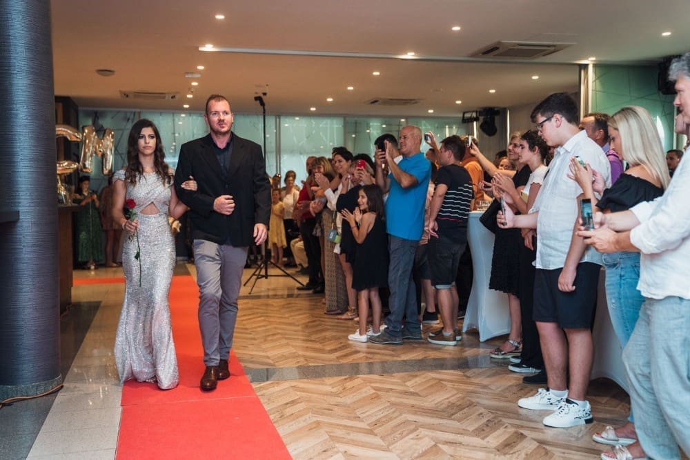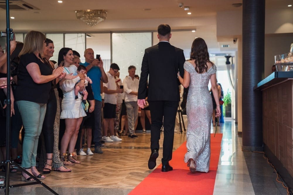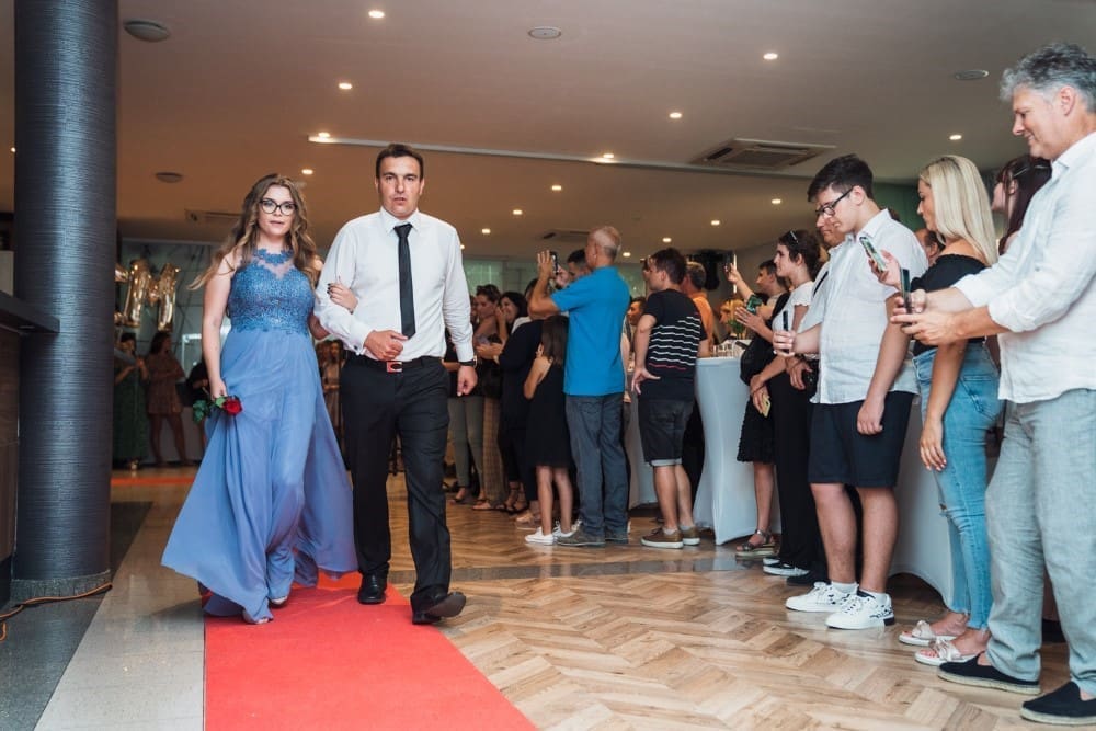 Večer je započela tradicionalnim špalirom maturanata i maturantica te se nastavila pozdravnim govorom učenice Barbare koja se zahvalila na upečatljivih 4 godine i osvrnula se na budućnost koja ih čeka i mogućnost izbora.