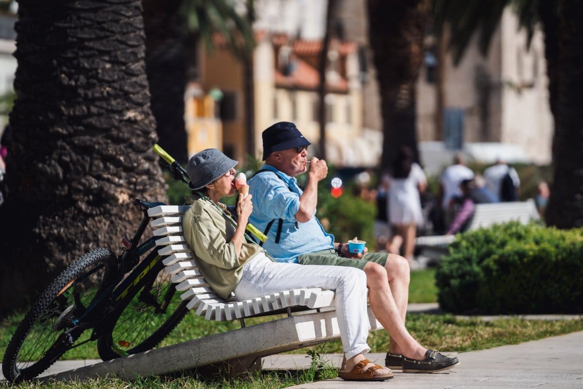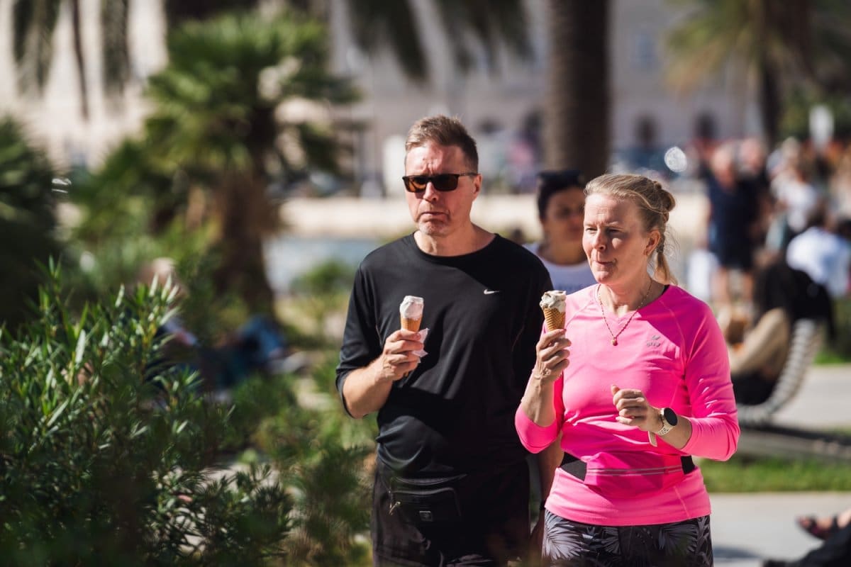 Brojni su prolaznici, domaći i stranci, uživali u omiljenom sladoledu dok su sjedili na klupama ili lagano šetali uz more. Lagani povjetarac donosio je svježinu s mora, čineći ovaj dan idealnim za opuštanje.