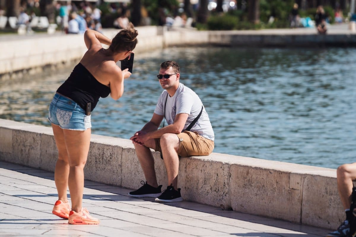 Na splitskoj Rivi danas je vladao pravi mir i opuštena atmosfera, idealna za uživanje u ugodnom jesenskom vremenu. Iako je ljetna sezona završila, turisti i dalje rado šetaju najpoznatijom šetnicom u gradu. Sunčeve zrake probijale su se kroz oblake, stvarajući savršenu temperaturu za popodnevnu šetnju.