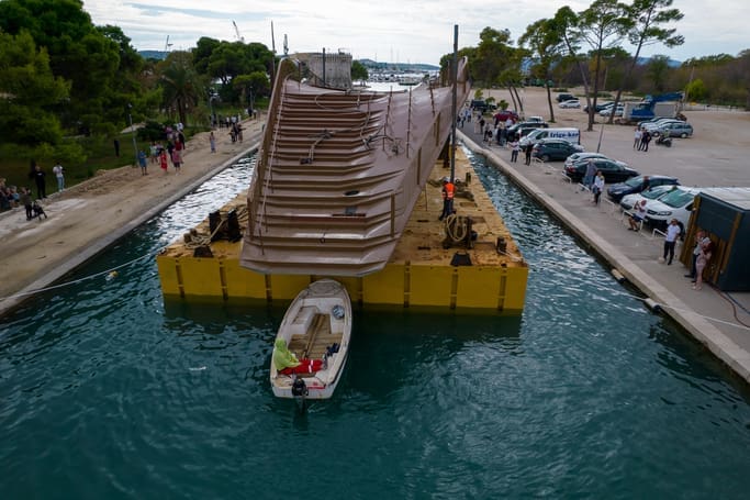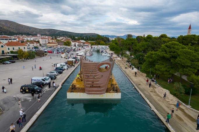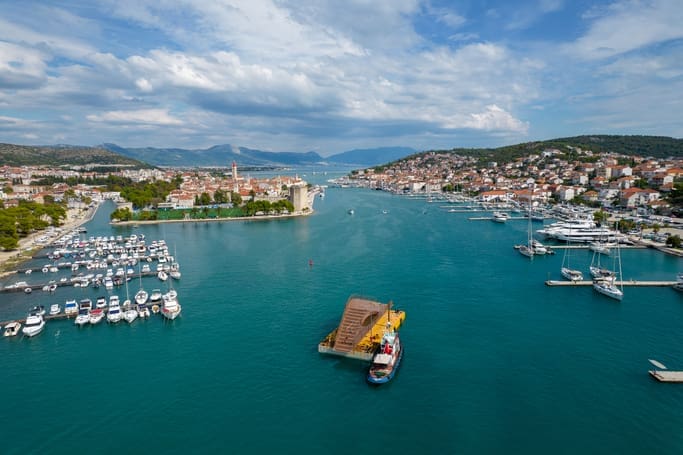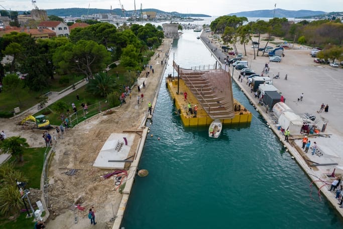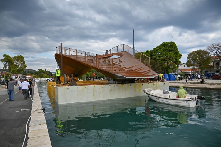 Novi pješački most preko Foše stigao je u Trogir u ranim popodnevnim satima iz vranjičkog brodogradilišta. Most je dopremljen posebnim tegljačem, a ruta od nekoliko nautičkih milja trajala je nešto više od četiri sata. Nakon uplovljavanja mosta i radnji koje prethode montaži, postupak prenošenja mosta na kopno specijalnom dizalicom planiran je za predvečer ili četvrtak ujutro, ovisno o vremenskim uvjetima. U narednim danima slijedi postavljanje gumirane podloge, rasvjete, sjedalica i druge opreme te bi most trebao biti otvoren za prolaz pješaka za dva tjedna.