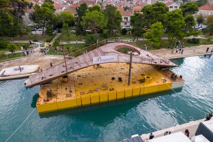 Dolasku mosta svjedočili su brojni znatiželjni građani i turisti. Cijelim putem most je pratio i njegov projektant, arhitekt Luka Cvitan iz ureda Prostorne taktike, čiji je rad ocijenjen najboljim na javnom arhitektonskom natječaju.