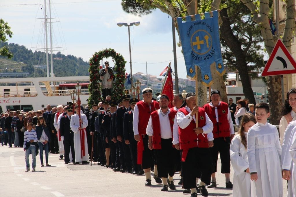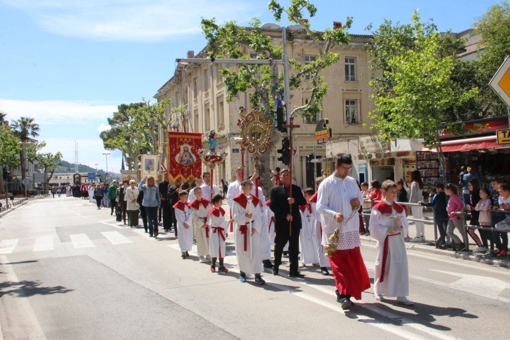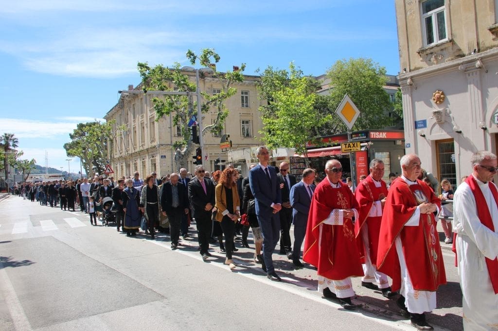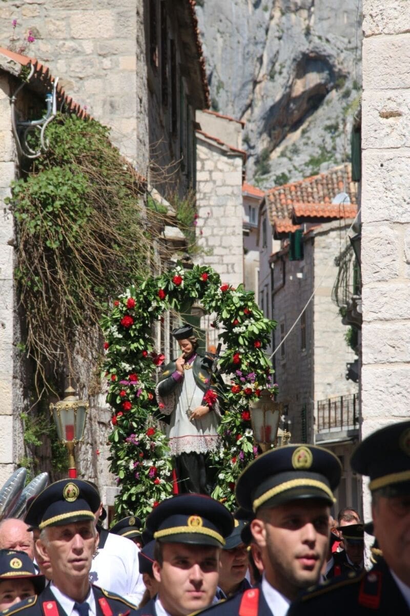 Procesiju i središnje euharistijsko slavlje u staroj gradskoj župi sv. Mihovila arkanđela predvodio je župnik splitske prvostolnice don Tomislav Ćubelić. U koncelebraciji su bili župnik i omiški dekan don Mate Čulić, poljički dekan don Špiro Čikeš te desetak svećenika.