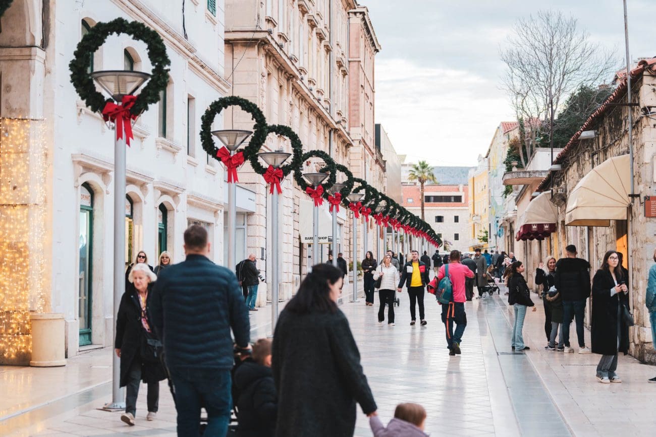 Centar Splita danas je živio u pravom blagdanskom ritmu: adventske kućice, mirisi cimeta i kuhanog vina te svjetlosne instalacije pretvorile su gradsku jezgru u šetnicu punu božićnog ugođaja. Prošetali smo splitskim Adventom i zabilježili najvažnije, najljepše okićene lokacije u samom srcu grada.