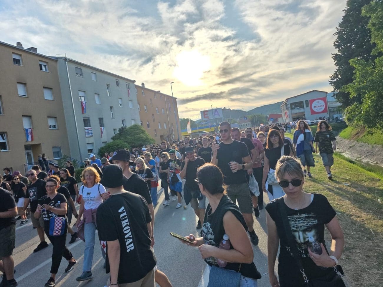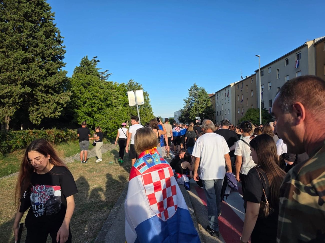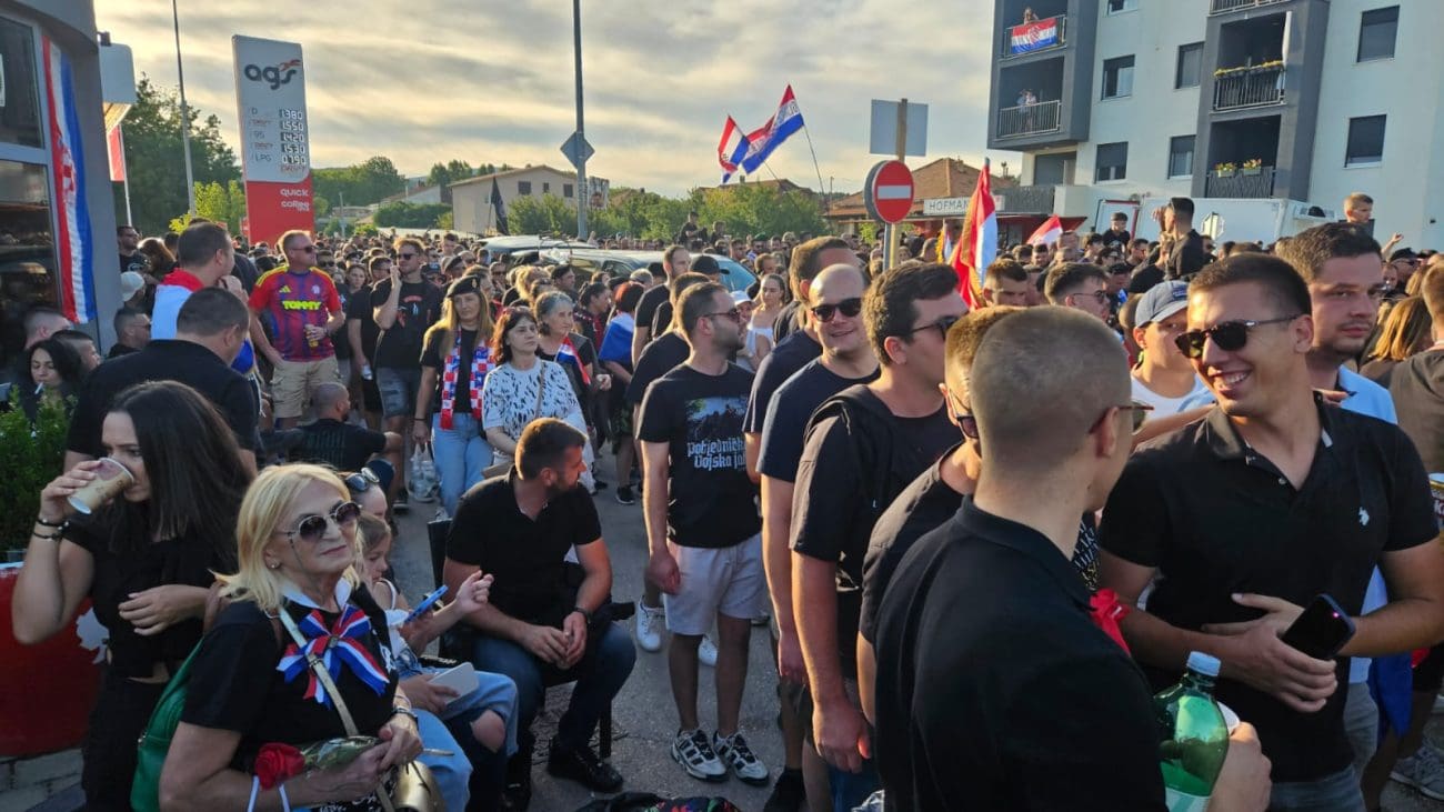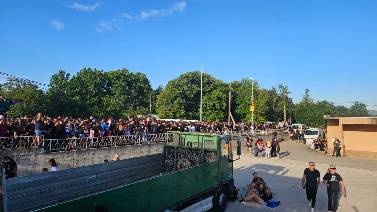 Na svim ulazima prema prostoru koncerta stvaraju se ogromne gužve, a posjetitelji strpljivo čekaju kako bi zauzeli svoja mjesta. Uz pjesmu, zastave i domoljubna obilježja, atmosfera je uzavrela, no raspoloženje je i dalje pozitivno i uzbuđeno.