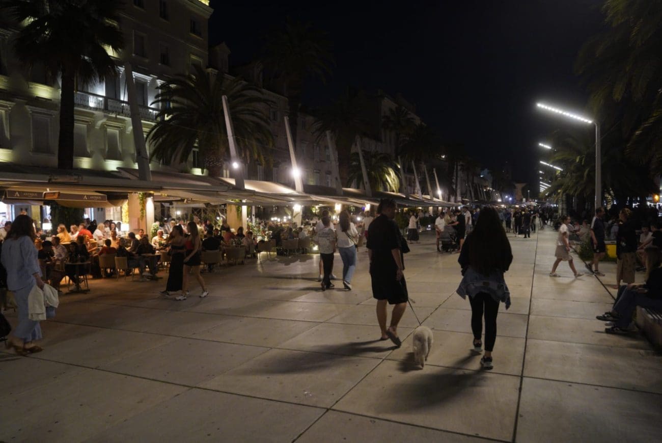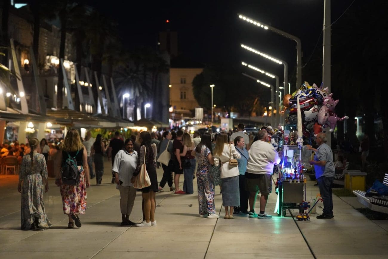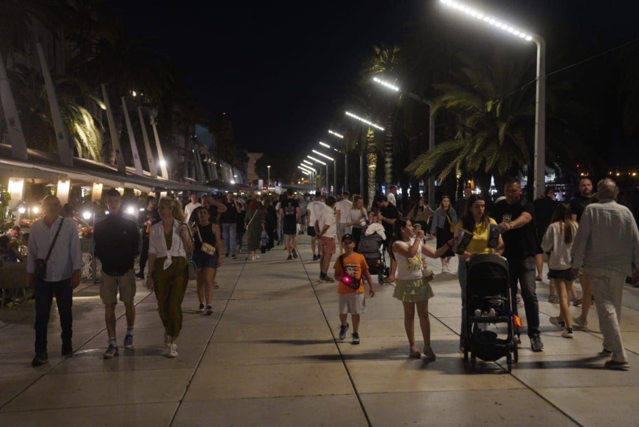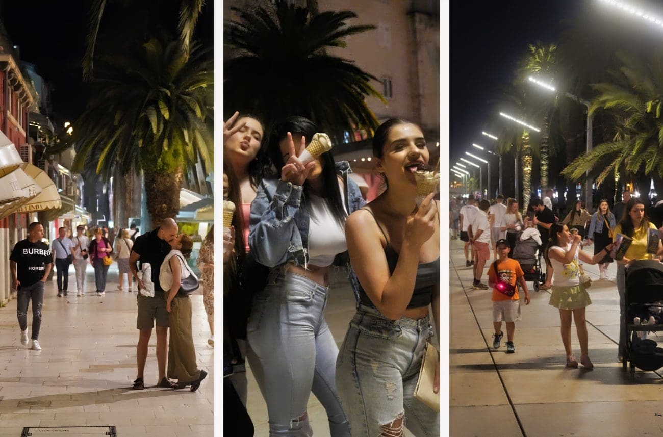 Večeras smo posjetili splitsku Rivu koja je, u najboljem svjetlu, pokazala koliko grad pod Marjanom zna živjeti punim plućima. Glavna gradska šetnica bila je prepuna šetača, a na svakom koraku mogli su se čuti različiti jezici – potvrda da turistička sezona polako uzima zamah.