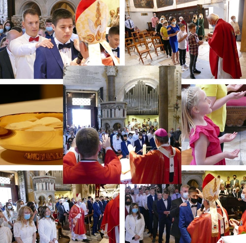 Splitsko-makarski nadbiskup Marin Barišić predvodio je euharistijsko slavlje na svetkovinu Duhova, u nedjelju 23. svibnja u splitskoj katedrali sv. Dujma. Tom je prigodom podijelio sakrament Potvrde devetnaestero krizmanika i krizmanica. U koncelebraciji su bili: katedralni župnik don Ante Mateljan, kanonik Prvostolnog kaptola don Marko Ćubelić i nadbiskupov tajnik don Nikola Šakić.
