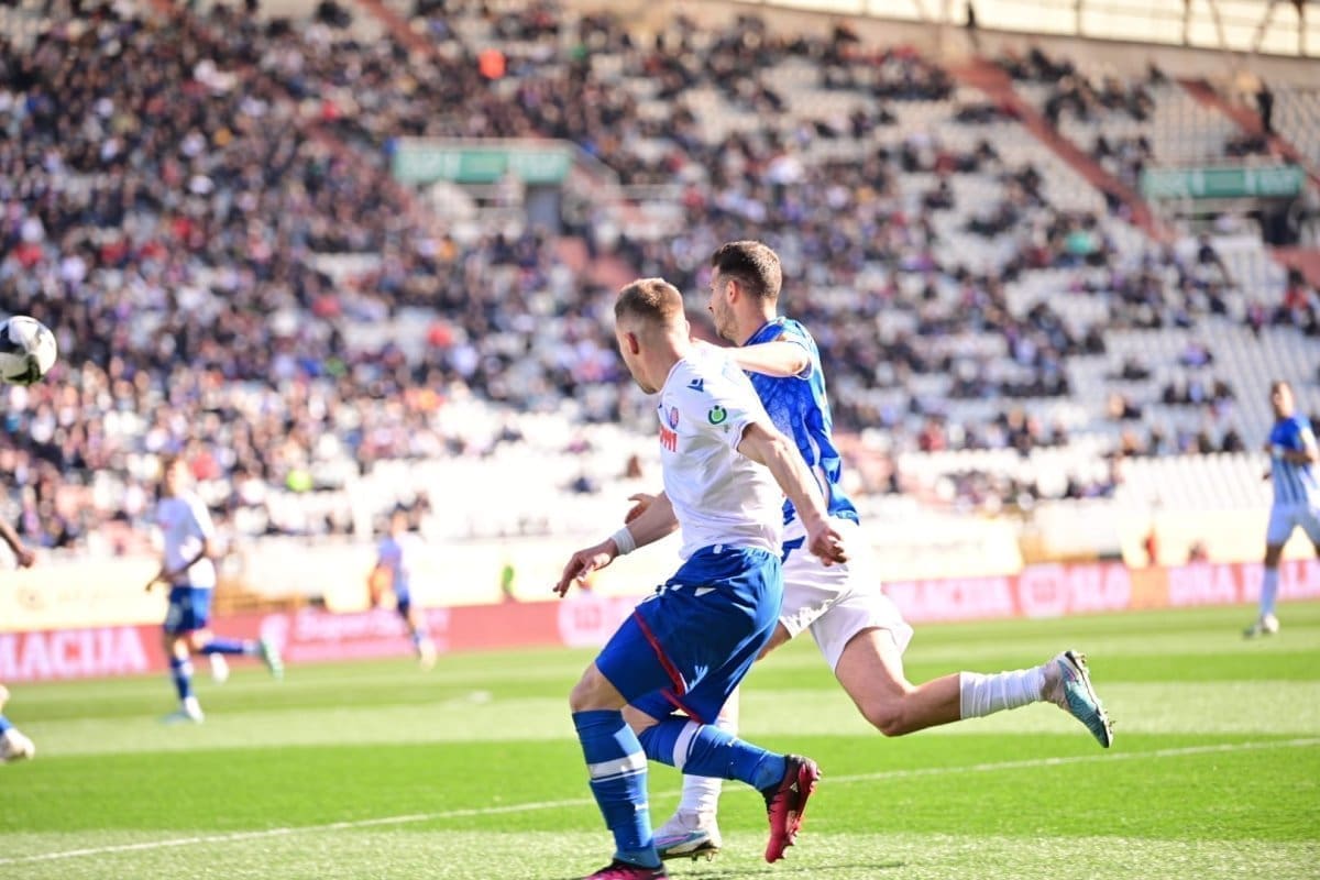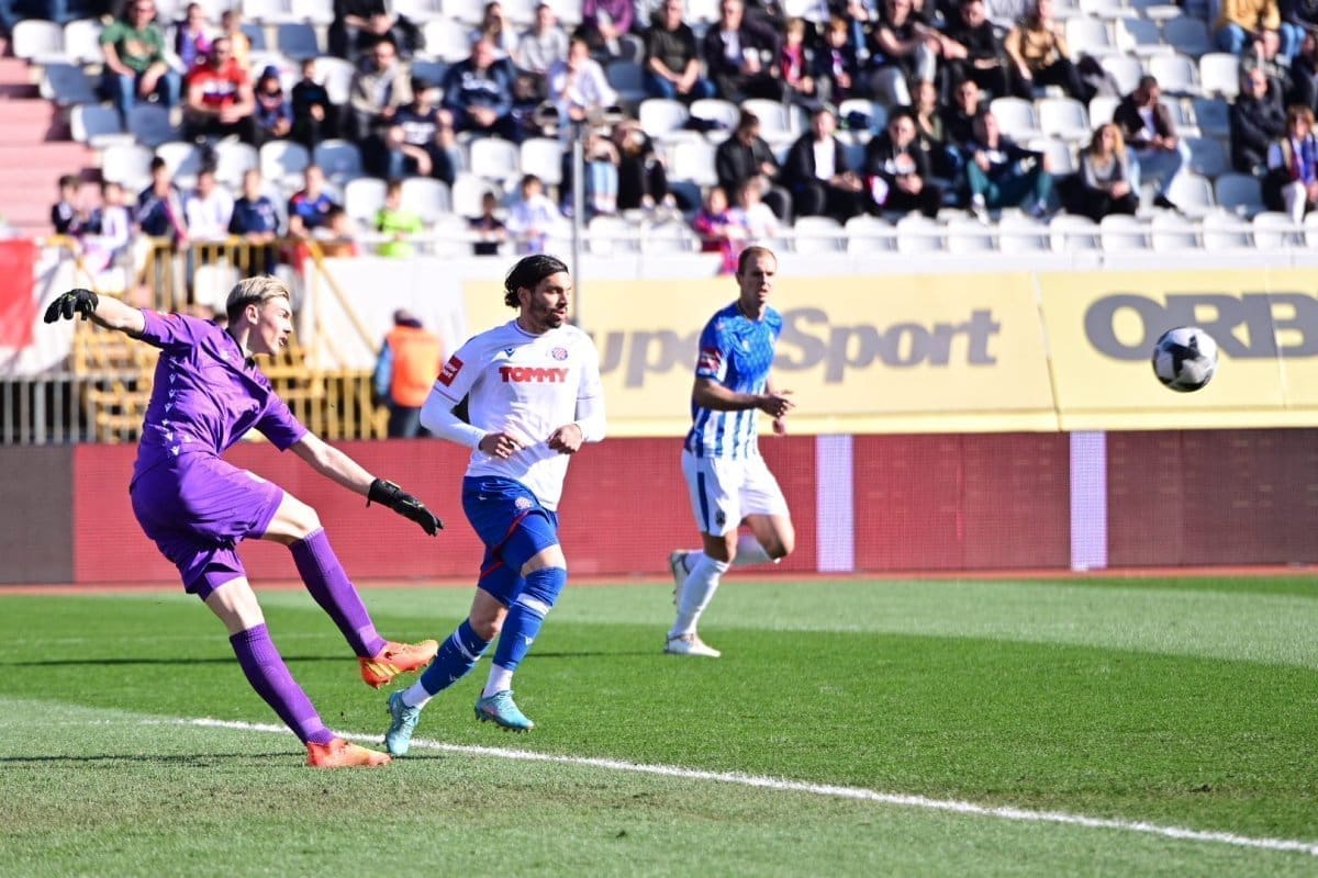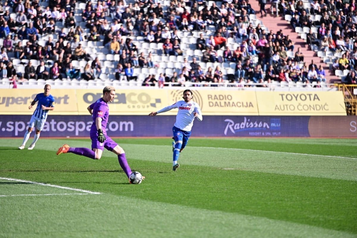 U jeku Hajdukovih napada Lokomotiva u 12. minuti stiže do vodstva. Cipetićev ubačaj s desne strane završio je na prvoj stativi gdje je Bubanja samo ispružio nogu i matirao Lučića za 0:1.