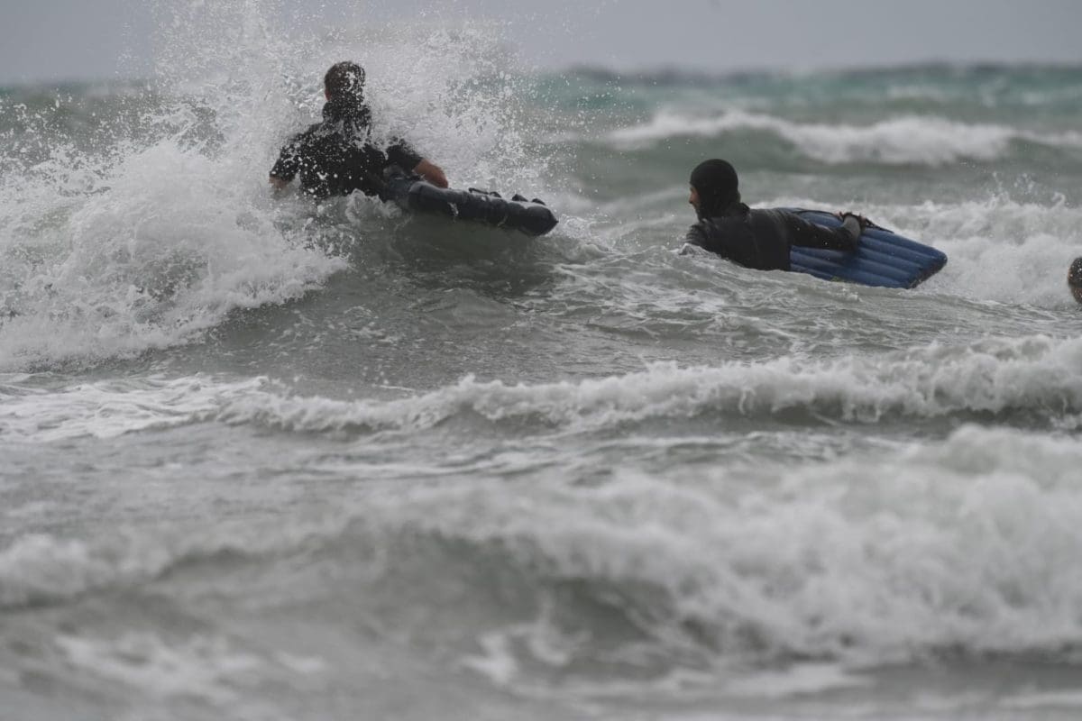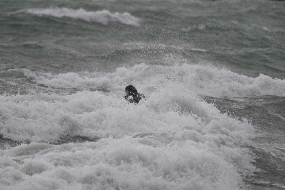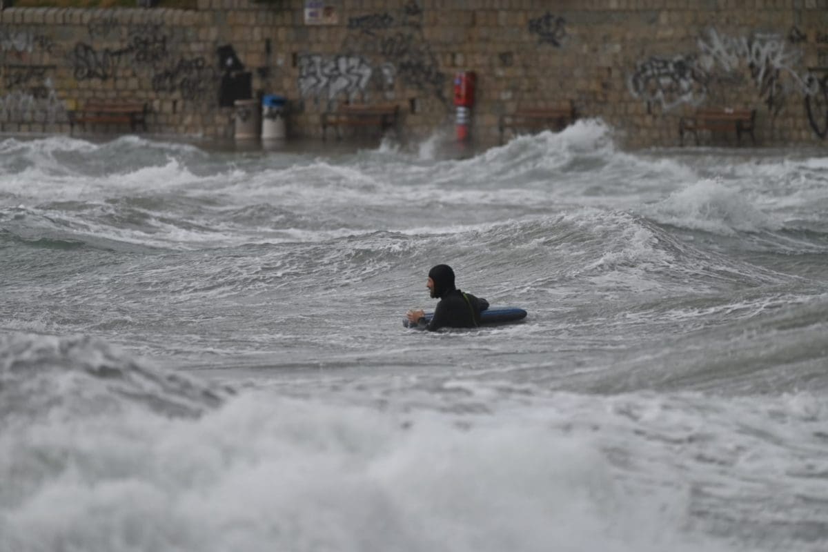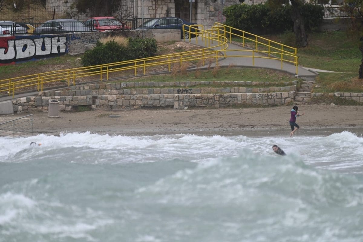 I dok se većina građana sklanjalo od obalnog područja, neki su jedva dočekali. Vrijeme je bilo idealno za surfanje.