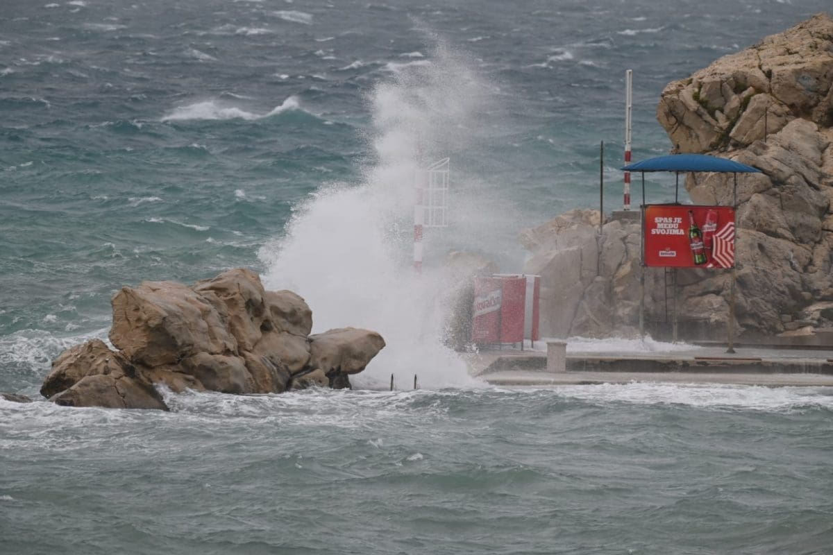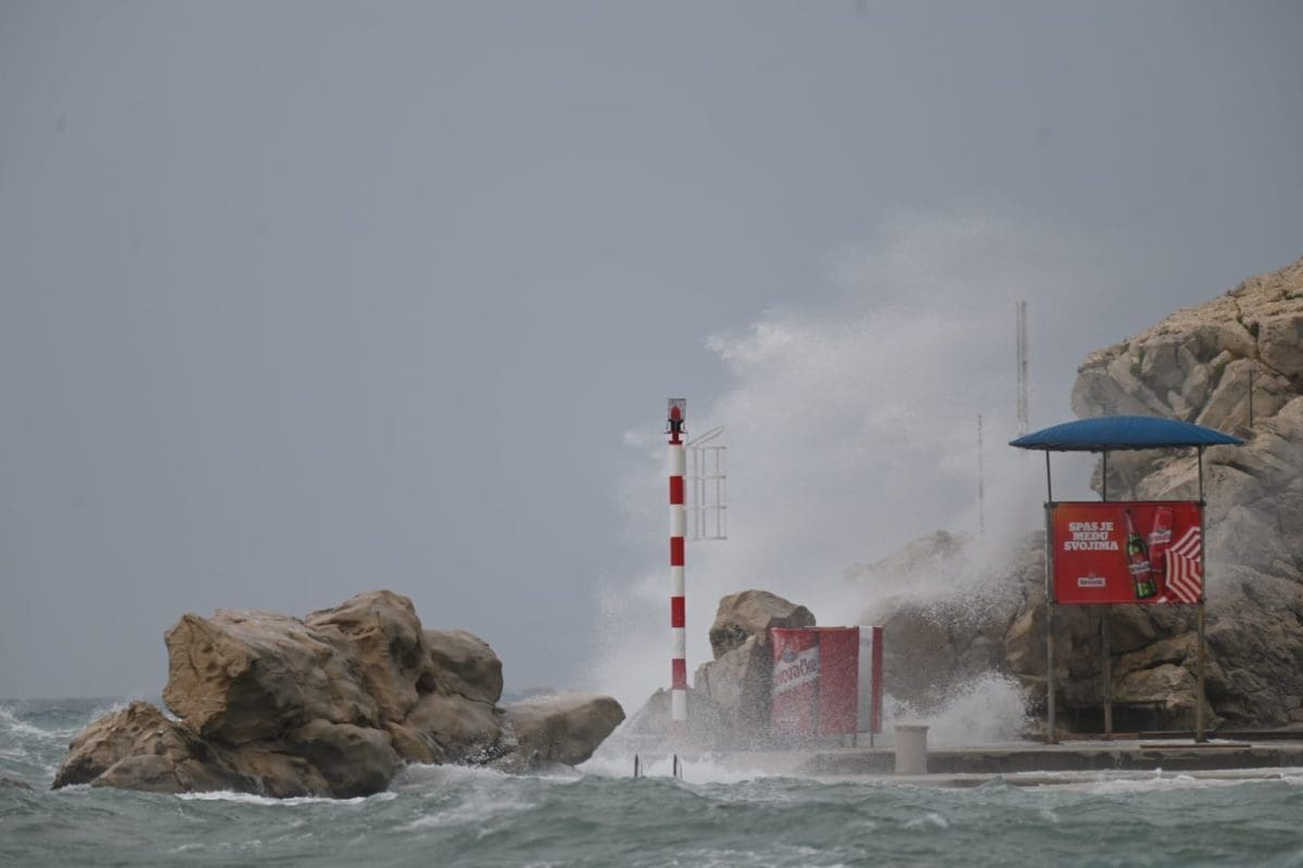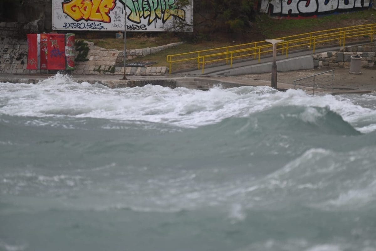 Tijekom cijelog jutra olujno oštro i lebić puhali su i na području Splita, s udarima preko 100km/h.