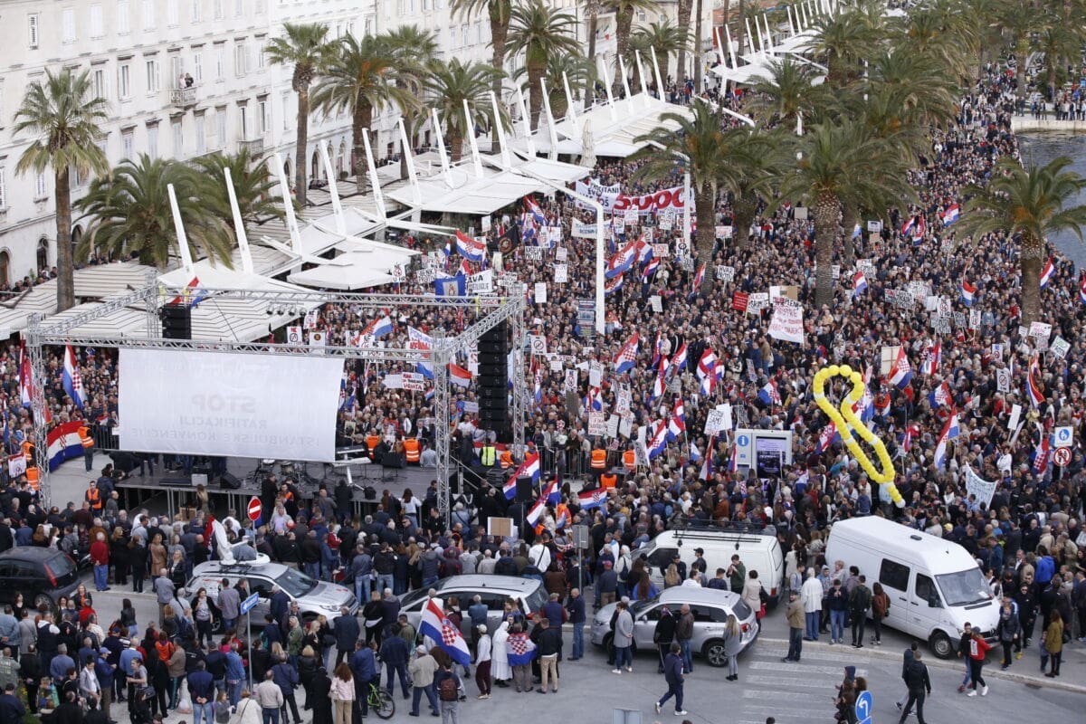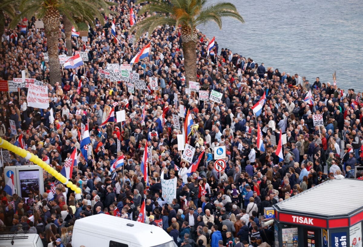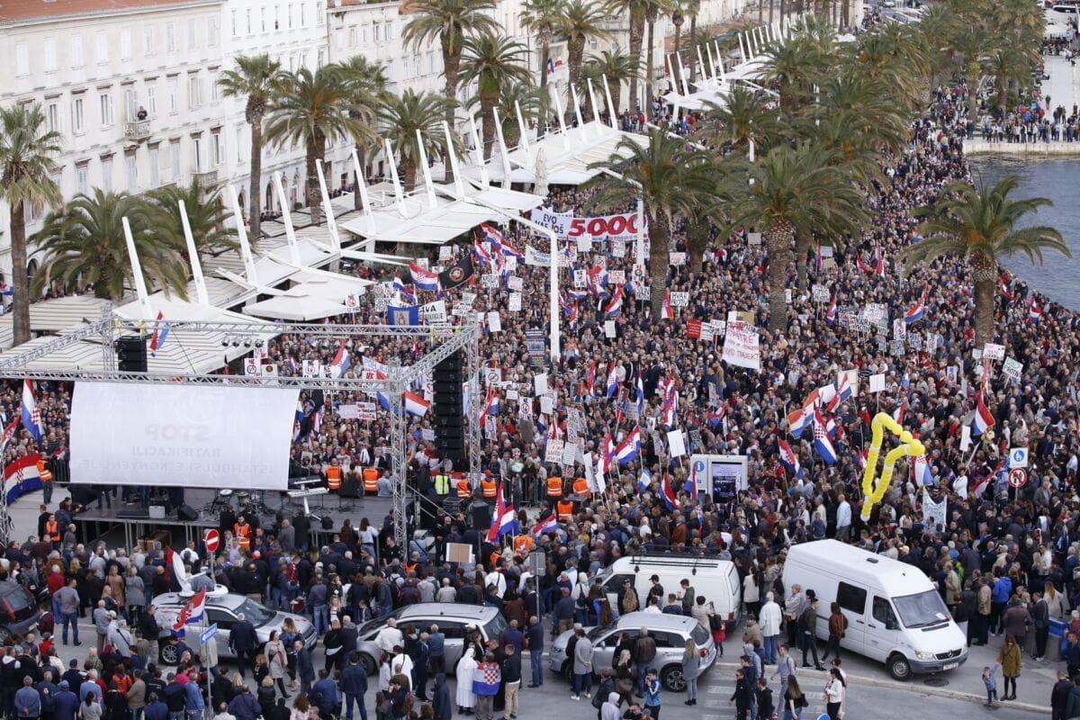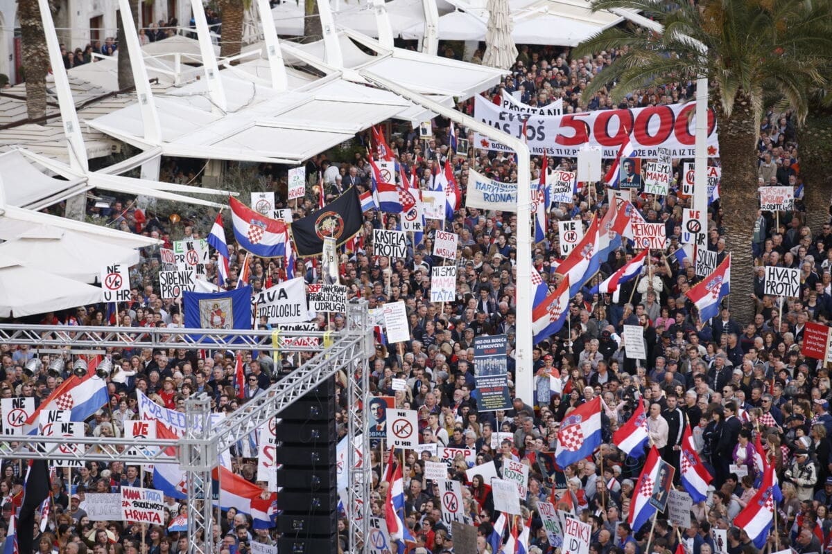 Na splitskoj Rivi skupilo se 20-ak tisuća prosvjednika protiv ratifikacije Istanbulske konvencije. Prosvjednici su za ovu priliku pripremili brojne transparentne, a s govornice su se čule oštre poruke prema Vladi.