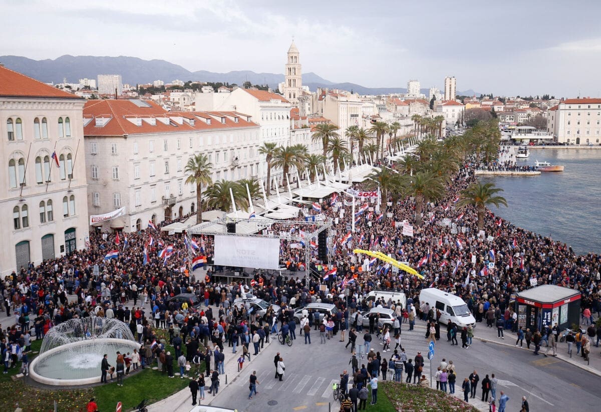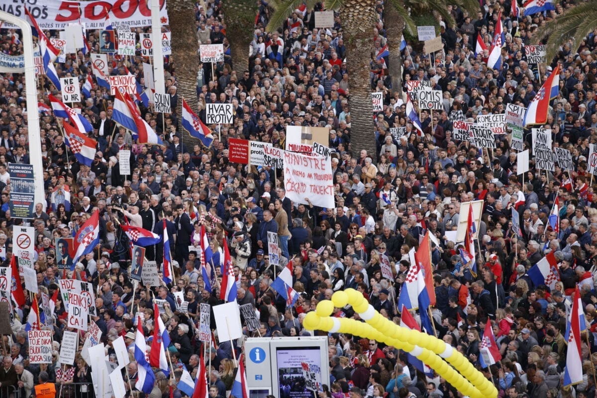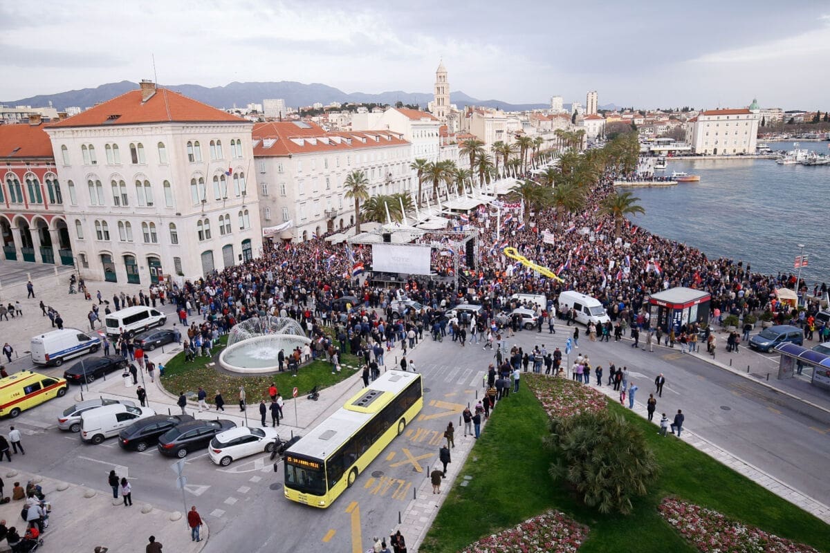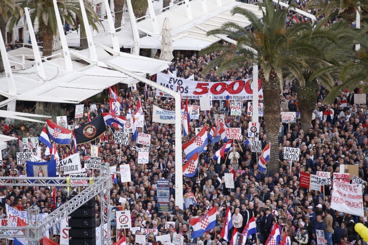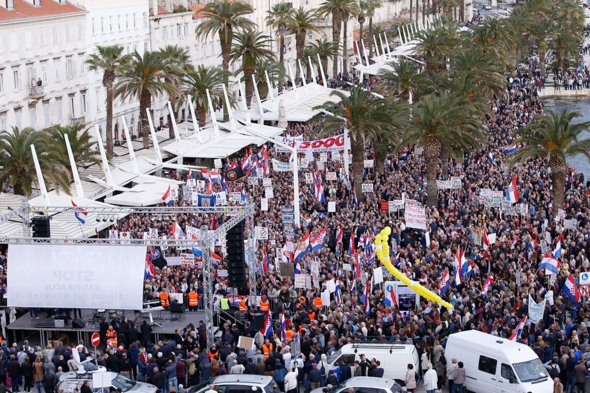 Na splitskoj Rivi skupilo se 20-ak tisuća prosvjednika protiv ratifikacije Istanbulske konvencije. Prosvjednici su za ovu priliku pripremili brojne transparentne, a s govornice su se čule oštre poruke prema Vladi.