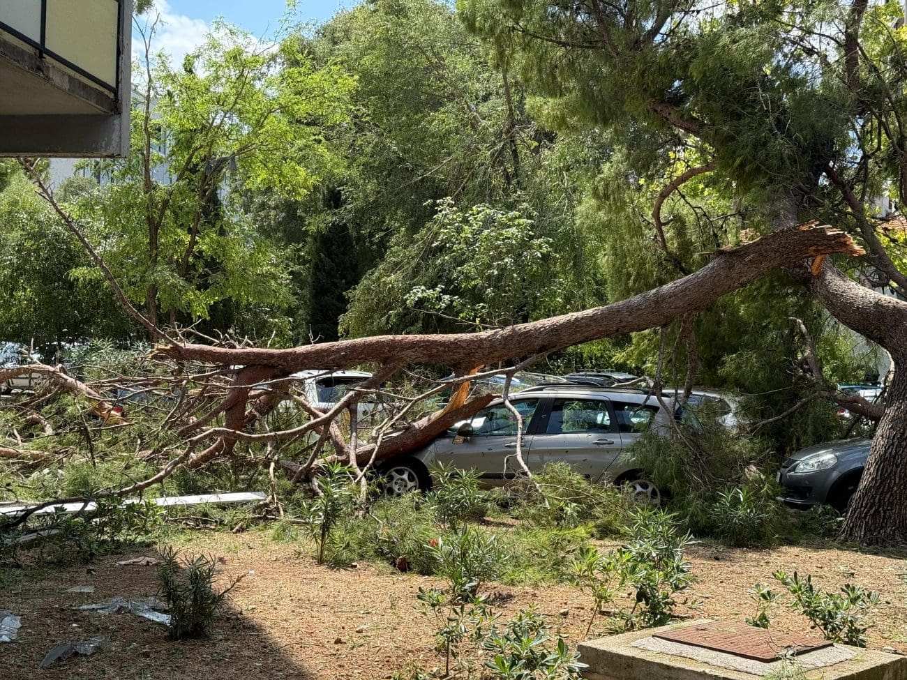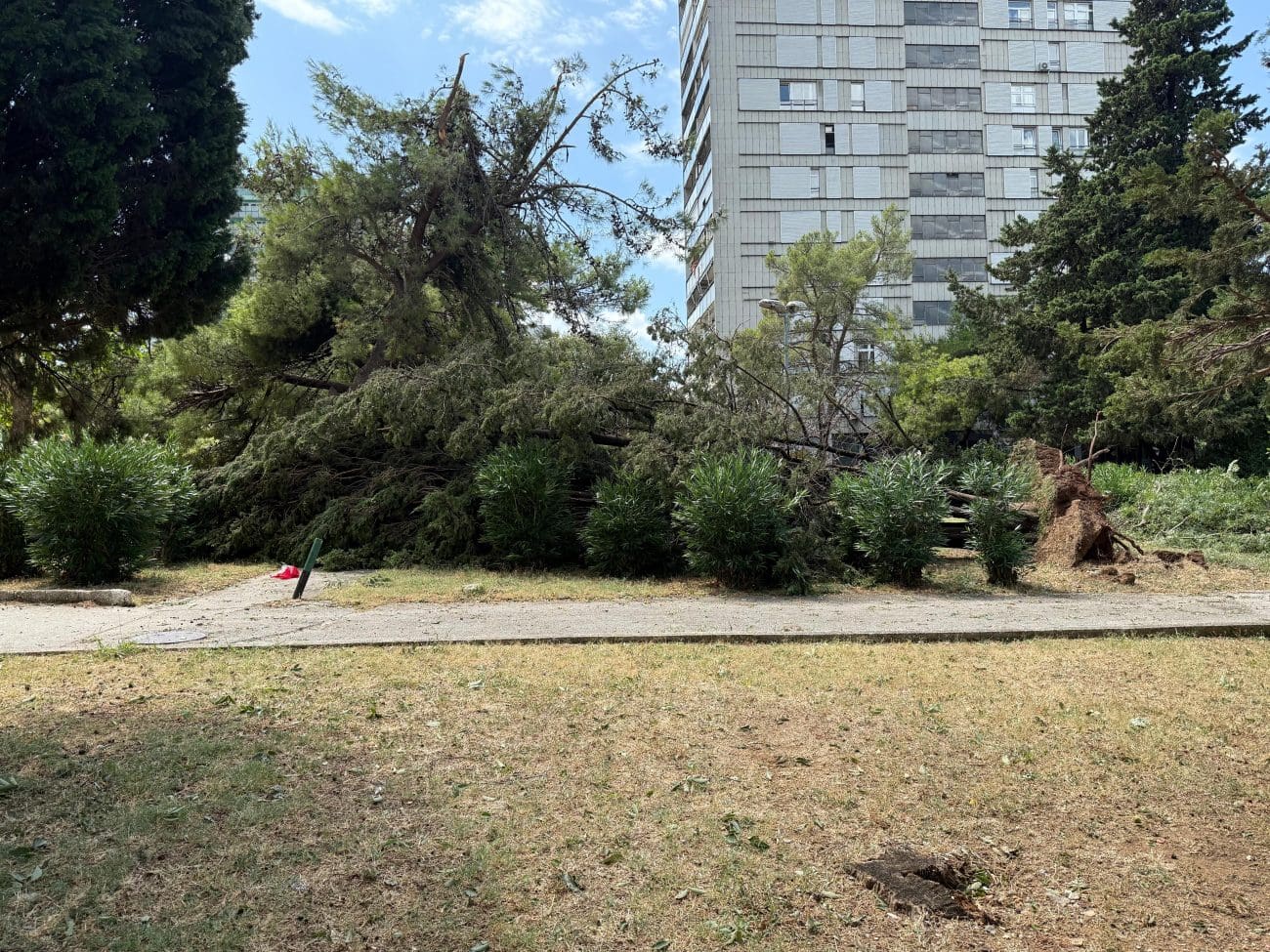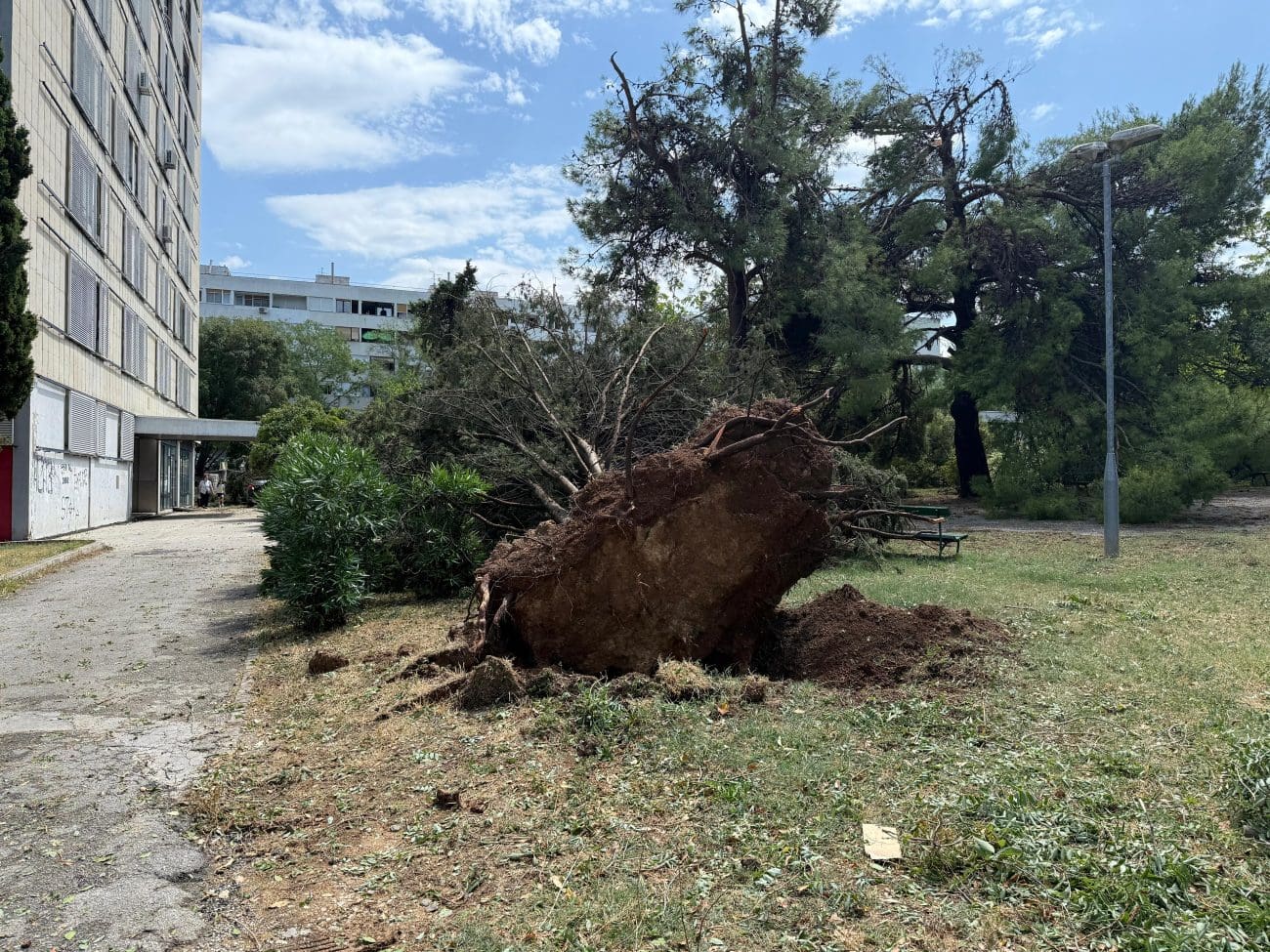 Split je jutros zahvatilo snažno nevrijeme koje je prouzročilo veliku materijalnu štetu i ozljede više osoba. Najnovije fotografije s terena stižu sa Spinuta i Prvih voda, gdje su srušena stabla blokirala prometnice, a brojna vozila su oštećena.