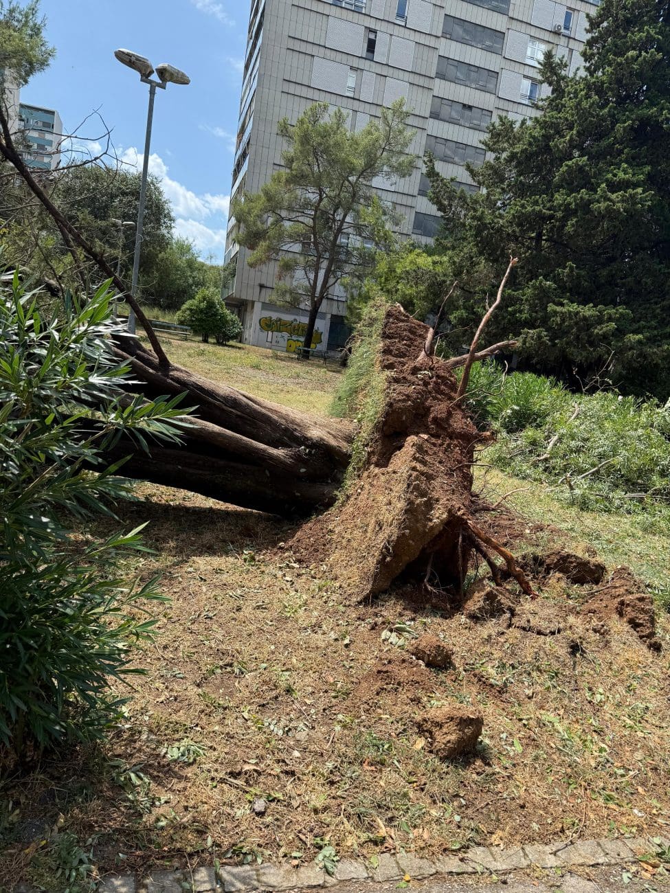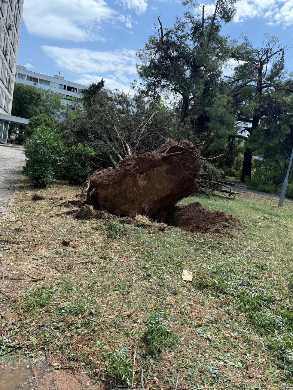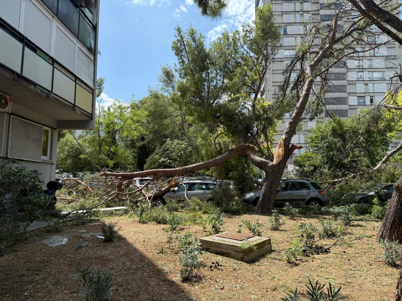 Split je jutros zahvatilo snažno nevrijeme koje je prouzročilo veliku materijalnu štetu i ozljede više osoba. Najnovije fotografije s terena stižu sa Spinuta i Prvih voda, gdje su srušena stabla blokirala prometnice, a brojna vozila su oštećena.