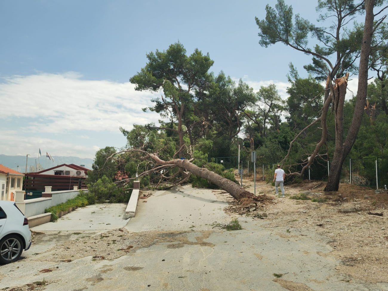 Prema podacima Civilne zaštite, Županijski centar 112 Split jutros je zaprimio više stotina poziva građana. U splitskoj luci došlo je i do incidenta kada je pukao konop trajekta na vezu, pri čemu je trajekt udario u usidreni turistički brod.