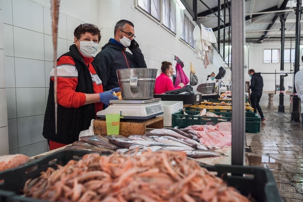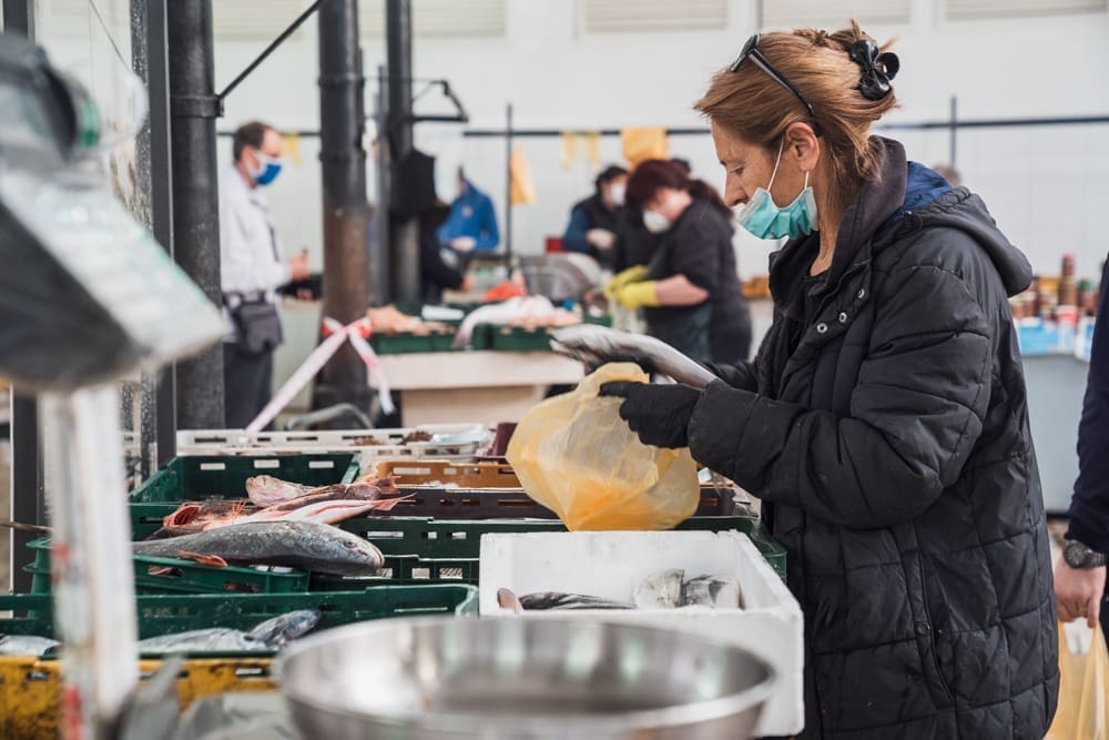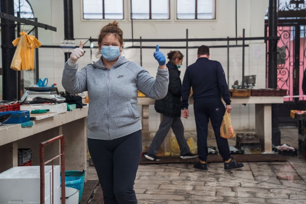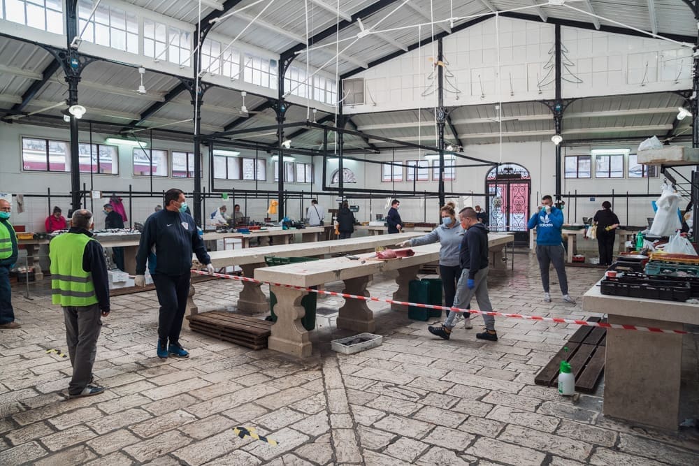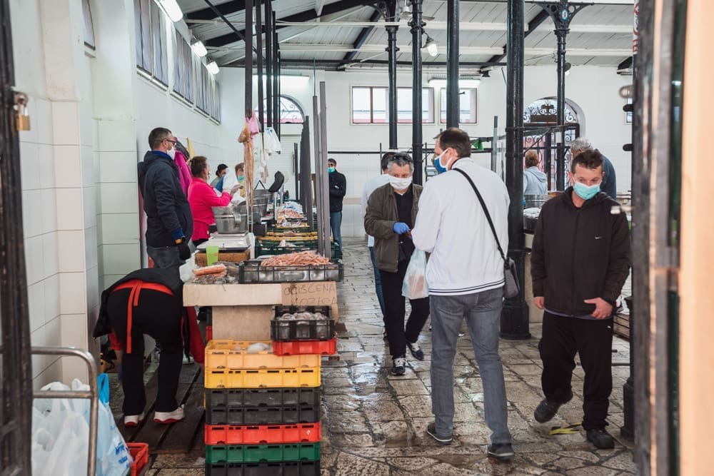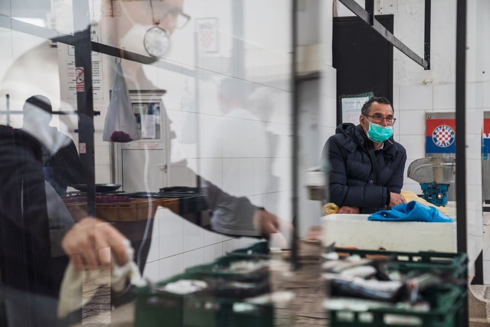 "Brže nego inače!" komentira uz smijeh jedan građanin. Na ulazu zaštitar, kontrolira količinu ljudi u prostoru ribarnice, pazi da se svi dezinficiraju prije ulaska. Unutra krezuba ponuda, u usporedbi sa uobičajenom. Manje je prodavača nego inače, no oni koji su tu imaju solidnu ponudu. Unatoč profiterstvu i nabijanju cijena kojem ovih dana svjedočimo, na ribarnici, kažu, čak je i jeftinije nego inače. Zakon ponude i potražnje, a trenutno je i jedno i drugo na niskim granama.