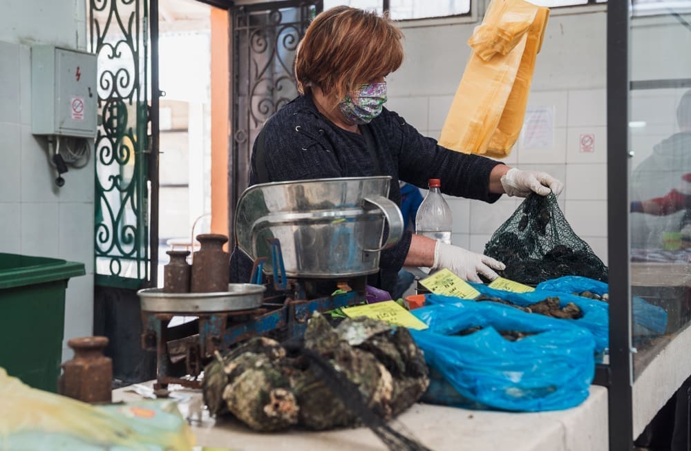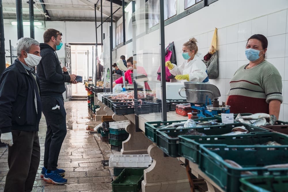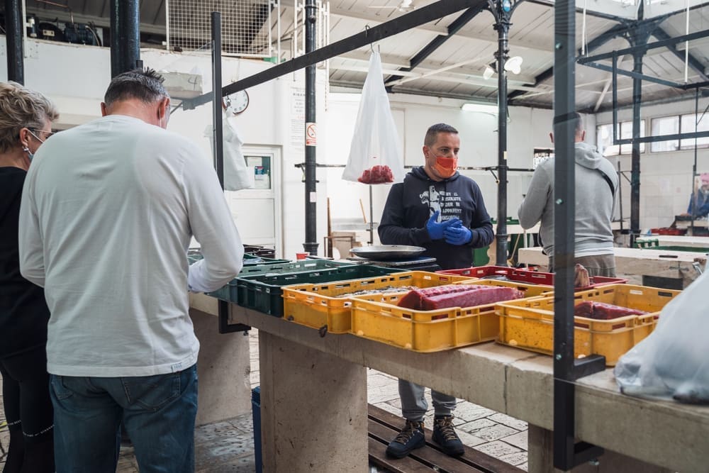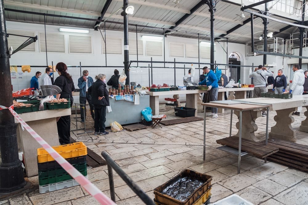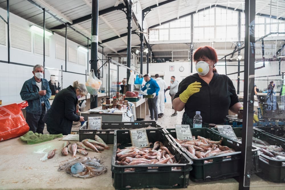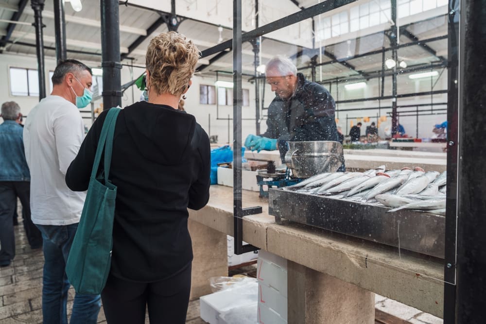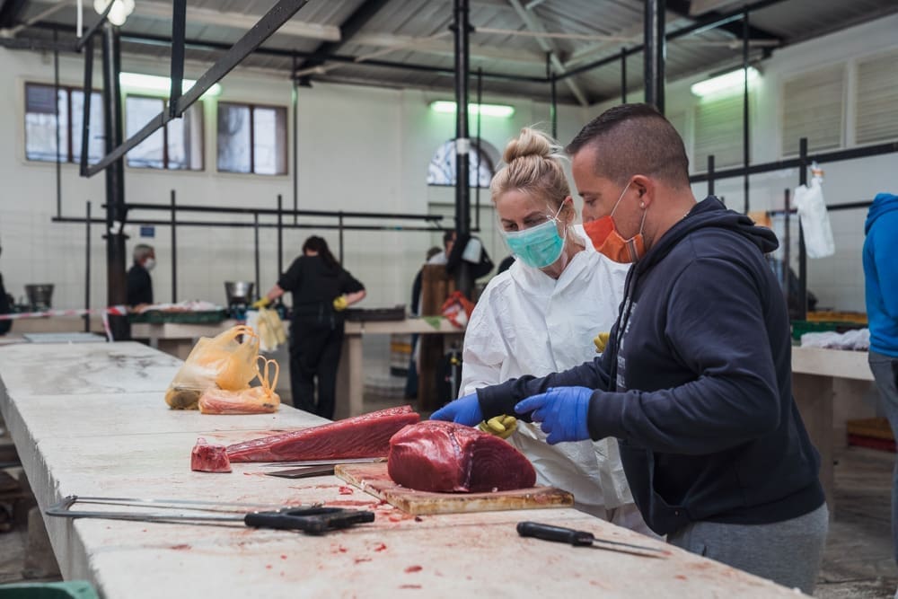 "Brže nego inače!" komentira uz smijeh jedan građanin. Na ulazu zaštitar, kontrolira količinu ljudi u prostoru ribarnice, pazi da se svi dezinficiraju prije ulaska. Unutra krezuba ponuda, u usporedbi sa uobičajenom. Manje je prodavača nego inače, no oni koji su tu imaju solidnu ponudu. Unatoč profiterstvu i nabijanju cijena kojem ovih dana svjedočimo, na ribarnici, kažu, čak je i jeftinije nego inače. Zakon ponude i potražnje, a trenutno je i jedno i drugo na niskim granama.