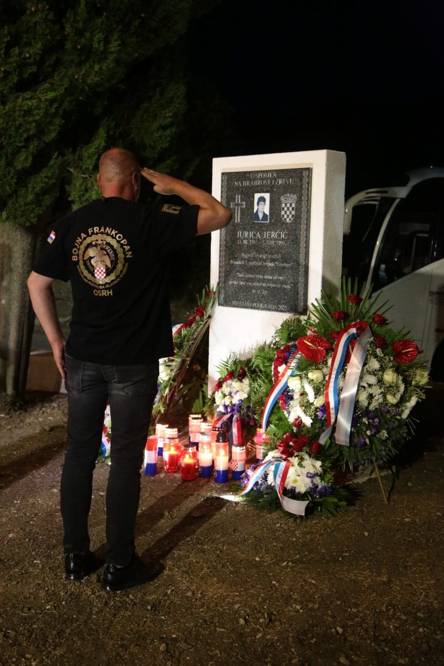 Spomen-ploču je svečano otkrila sestra Smiljana Jerčić, a nakon blagoslova položeni su vijenci i zapaljene svijeće. Okupljanje je završilo zajedničkim druženjem i domjenkom na travnjaku ispred crkve, u organizaciji Udruge Prsten i župe u Podgrađu, u duhu zahvalnosti i sjećanja na čovjeka koji je život dao za slobodu Hrvatske.