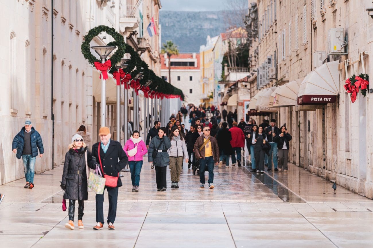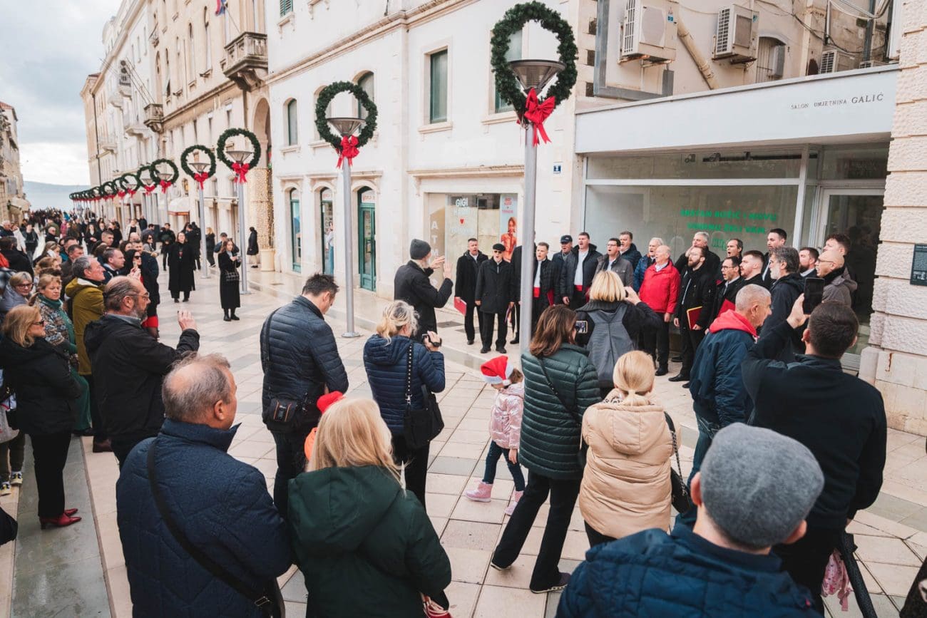 Uz dobro raspoloženje, čašicu razgovora i pokoje prigodno piće, ulice su vrvjele ljudima svih generacija. Pozdravljalo se poznate, nazdravljalo za zdravlje i sretne blagdane, a kroz gužvu se provlačila vedra atmosfera kakva se u Splitu posebno osjeti upravo na Badnjak – kad se grad, barem na trenutak, čini kao jedna velika familija.