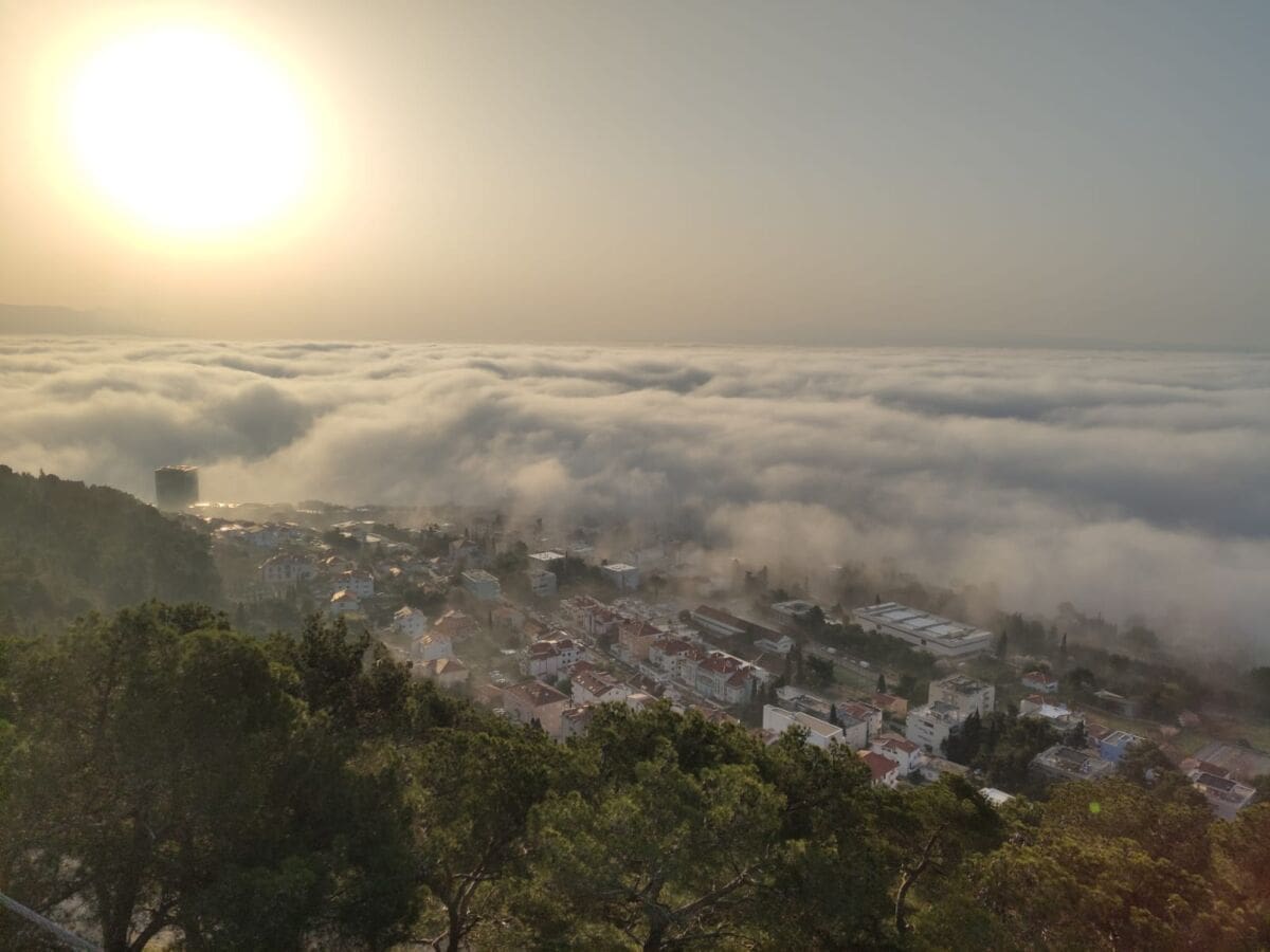 Međutim, u subotu ujutro je također cijeli grad osvanuo pod gustom maglom. Pogledajte kako grad izgleda s vrha Marjana.