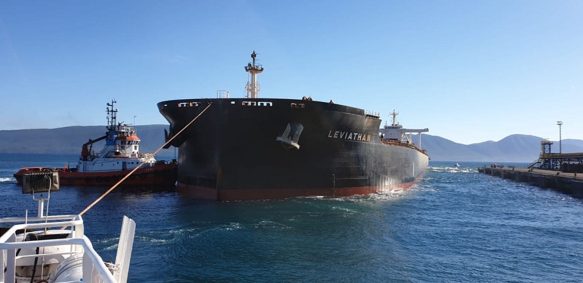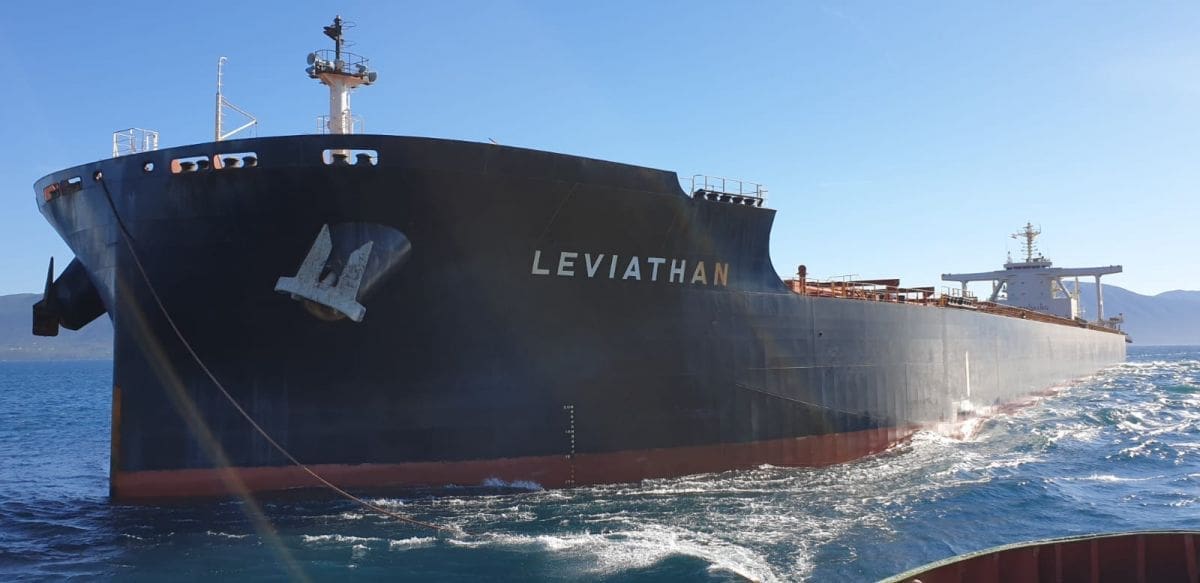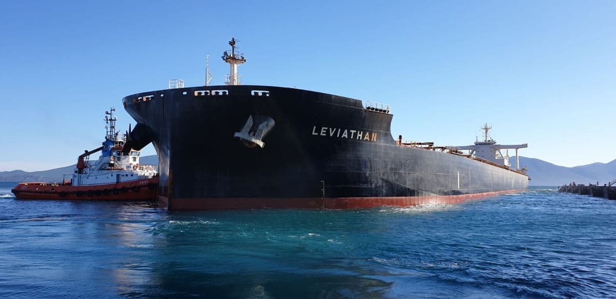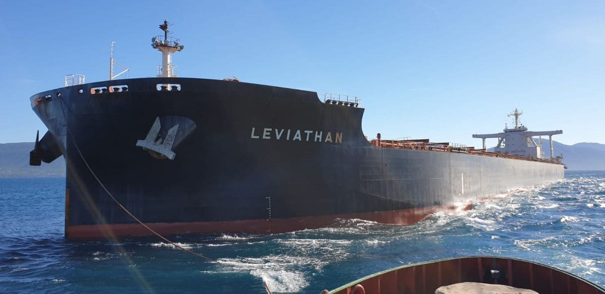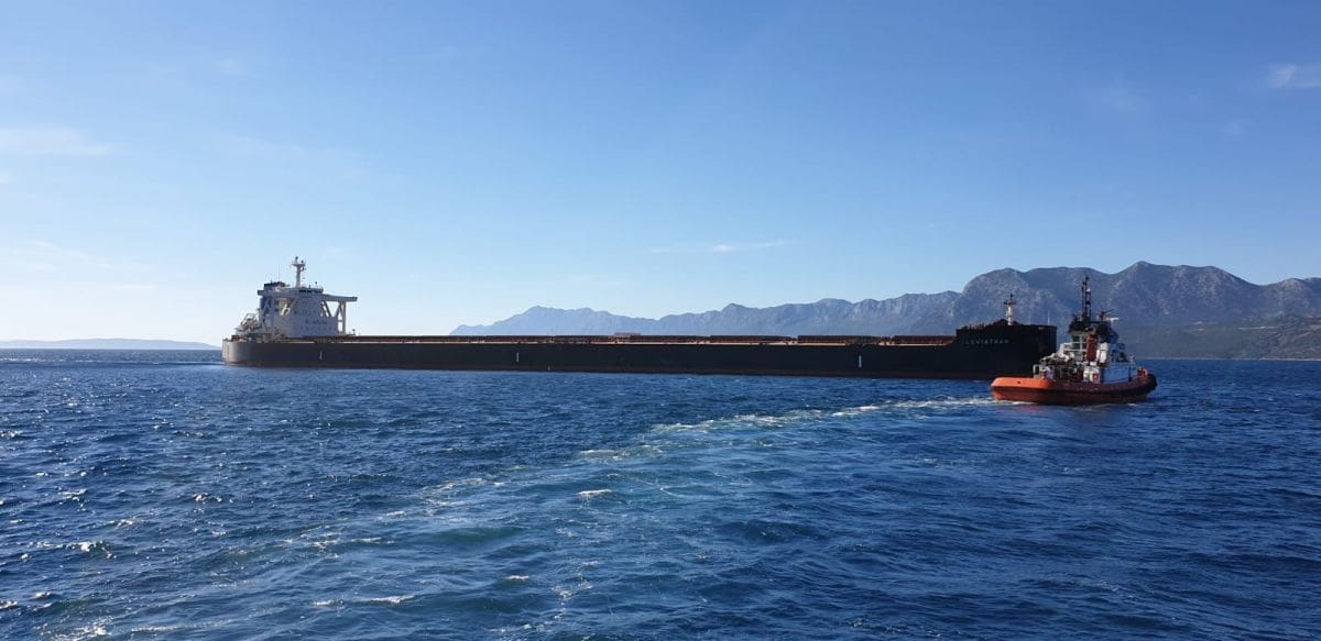 Leviathan je putovanje iz Australije za Ploče započeo 17. svibnja ove godine, a u Ploče je stigao sa 165.006 tona ugljena te mu je gaz oko 17,3 metara.