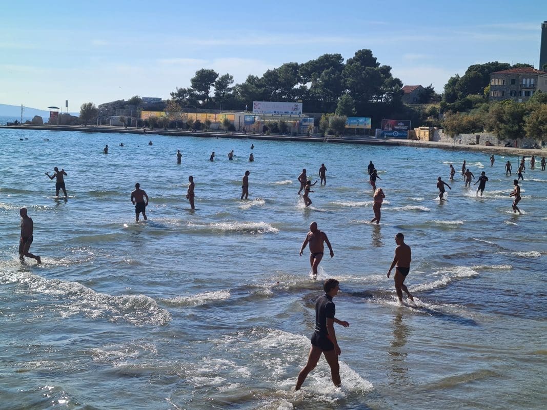 Nije neobično ni usred zime na Bačvicama naići na ponekog hrabrog kupača. Pa tako ni danas. Naravno, u podne, kad je more, po nekoj slobodnoj procjeni, najtoplije.