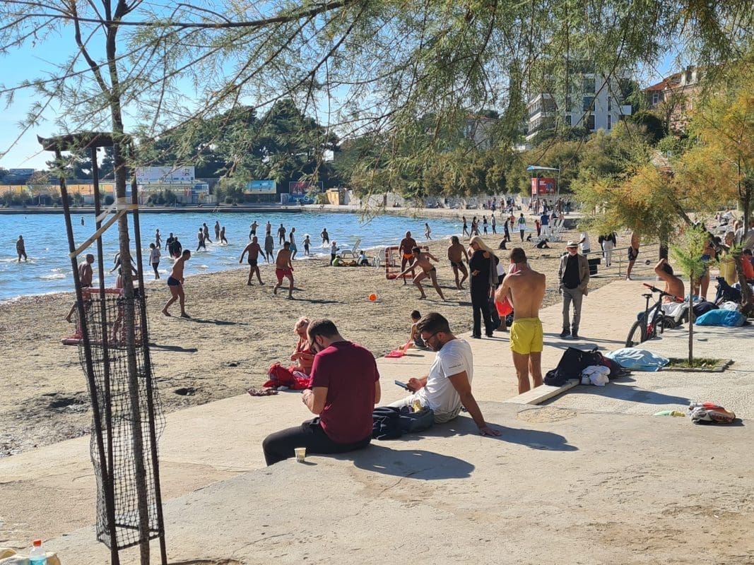 Splićani su iskoristili posljednji listopadski dan za uživanje na suncu. Vrijeme nas je zadnjih dana počastilo visokim temperaturama i količinom sunca dovoljnom za dnevnu dozu vitamina D. Najpoznatija splitska plaža tako je danas bila puna.