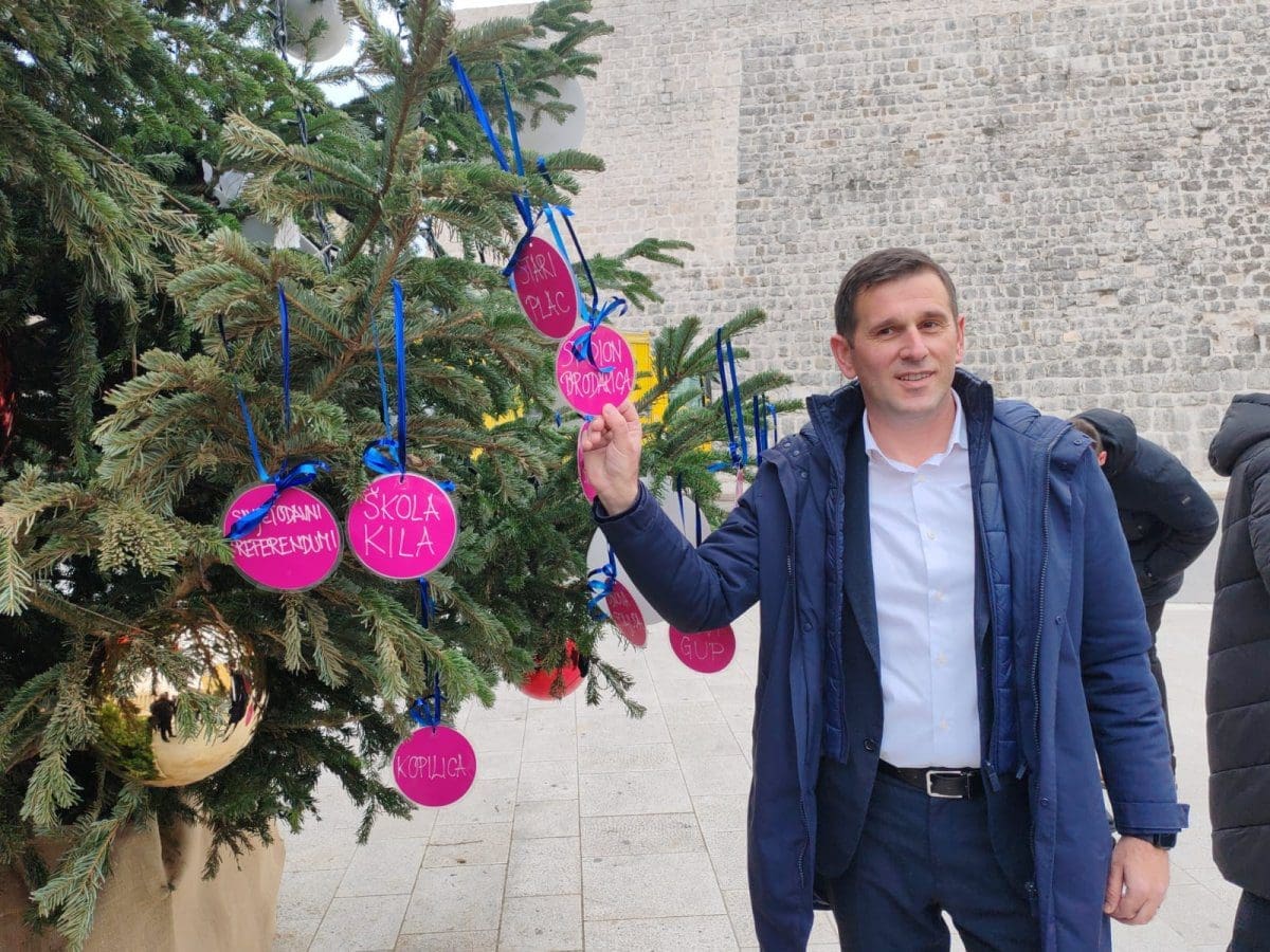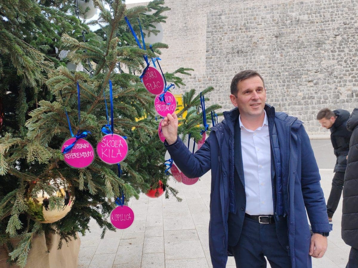 Promjena satnice press konferencije kandidata za gradonačelnika Splita Tomislava Šute nije zasjenila ključne političke poruke koje su bile u fokusu događaja ispred Hrvatskog narodnog kazališta Split. Na prigodnom performansu ukrašavanja božićnog drvca kuglicama s natpisima neispunjenih obećanja aktualnog gradonačelnika Ivice Puljka, Šuta je iznio niz kritika na račun upravljanja gradom, uz jasnu poruku: "Split stagnira i zaslužuje bolju budućnost."