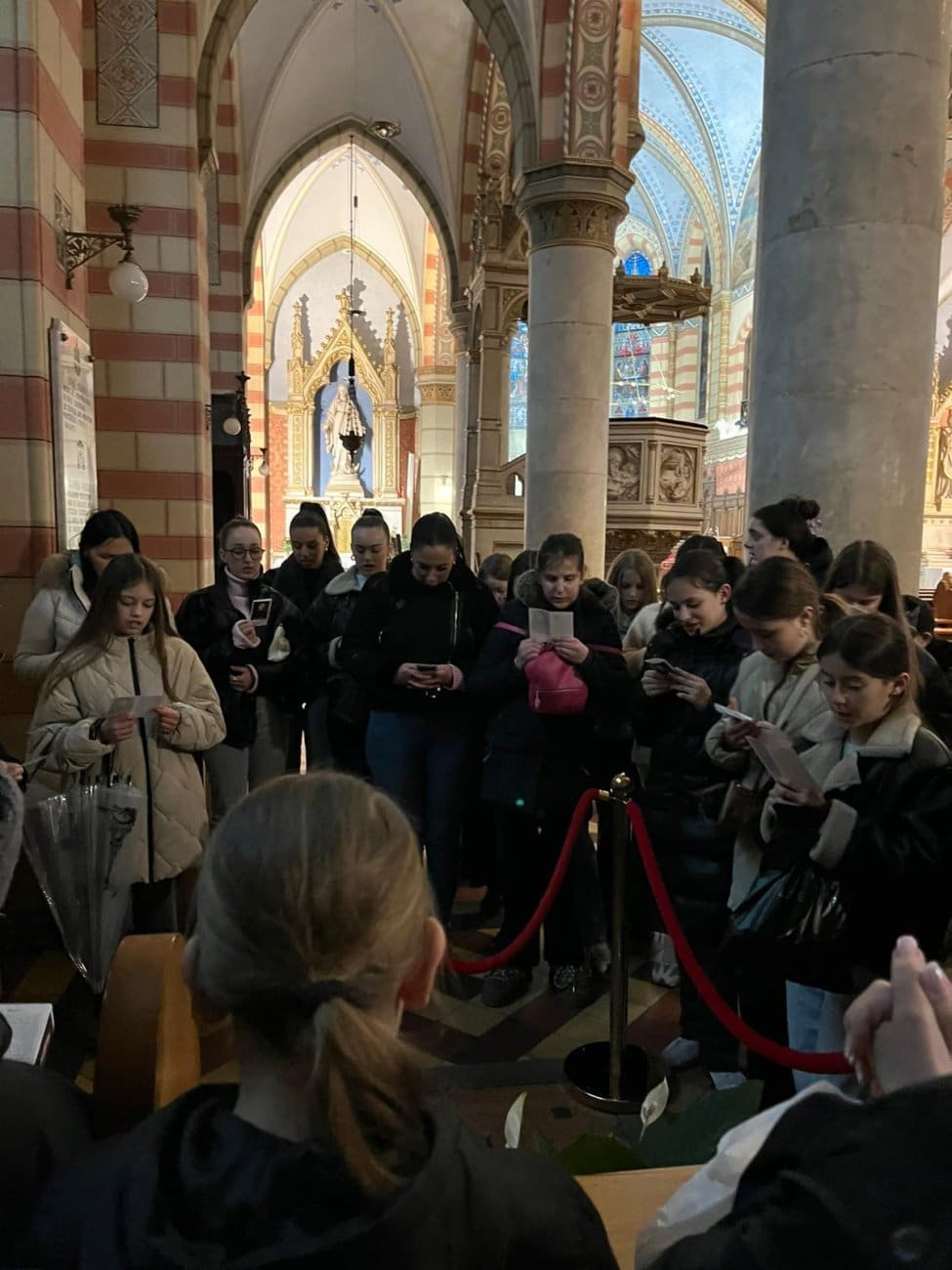 Tijekom boravka u Sarajevu Triljske mažoretkinje posjetile su i Katedralu Srca Isusova, gdje ih je dočekala časna sestra Mihaela Martinović. U kratkom susretu upoznala ih je s poviješću katedrale i njezinim značenjem za grad Sarajevo. Djevojke su se potom pomolile i na grobu nadbiskupa Josipa Stadlera, u ozračju zahvalnosti i zajedništva.