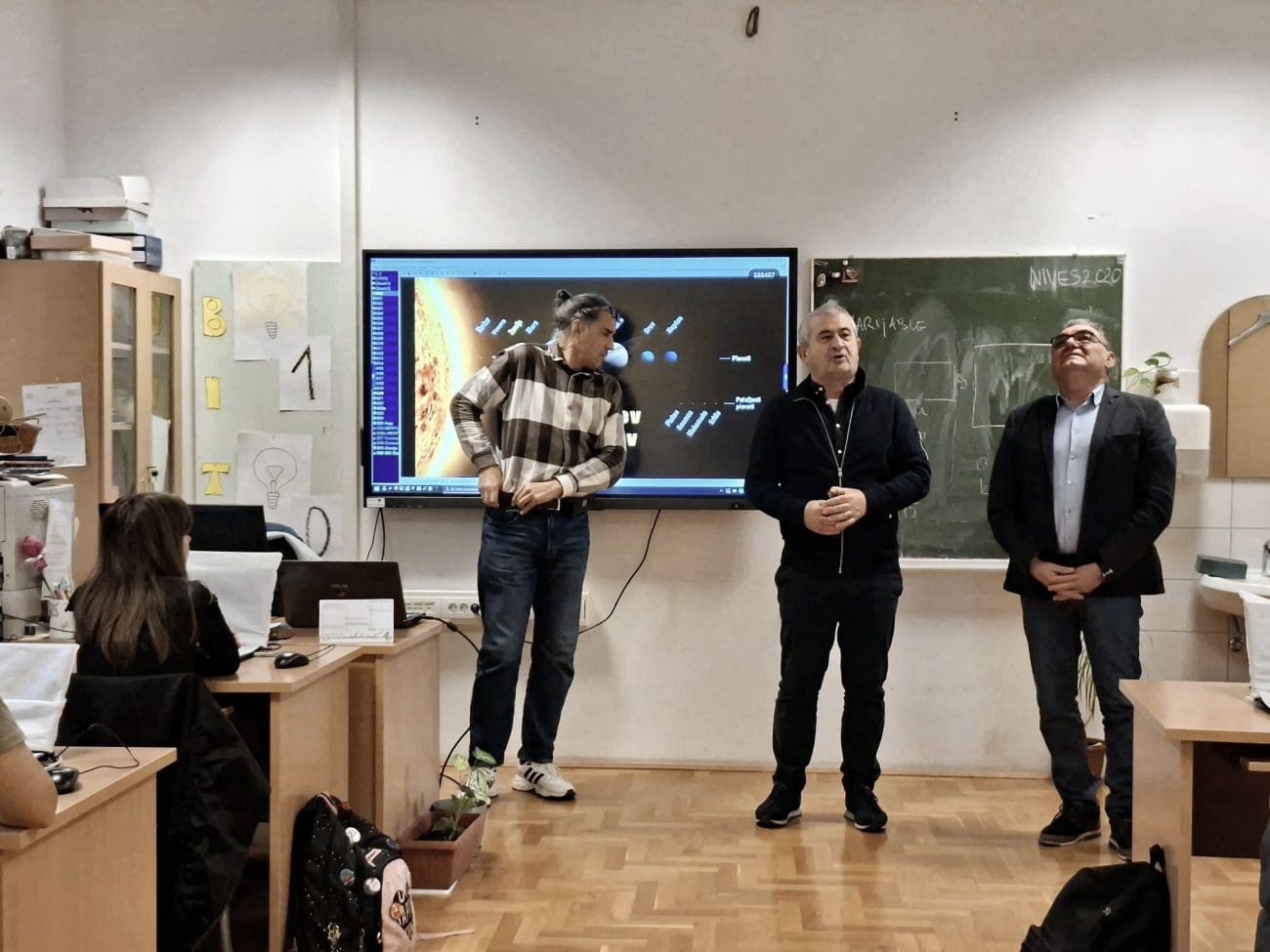 vrpcom i padobranom, a lansiranje gotovih uradaka će biti upriličeno u nastavku radionice, za nekoliko dana. Predavanje o Sunčevom sustavu je održao astronom-animator udruge Zvjezdano selo Mosor Zoran Knez. Nažalost, promatranje Sunca teleskopom je zbog oblačnog vremena moralo otpasti.