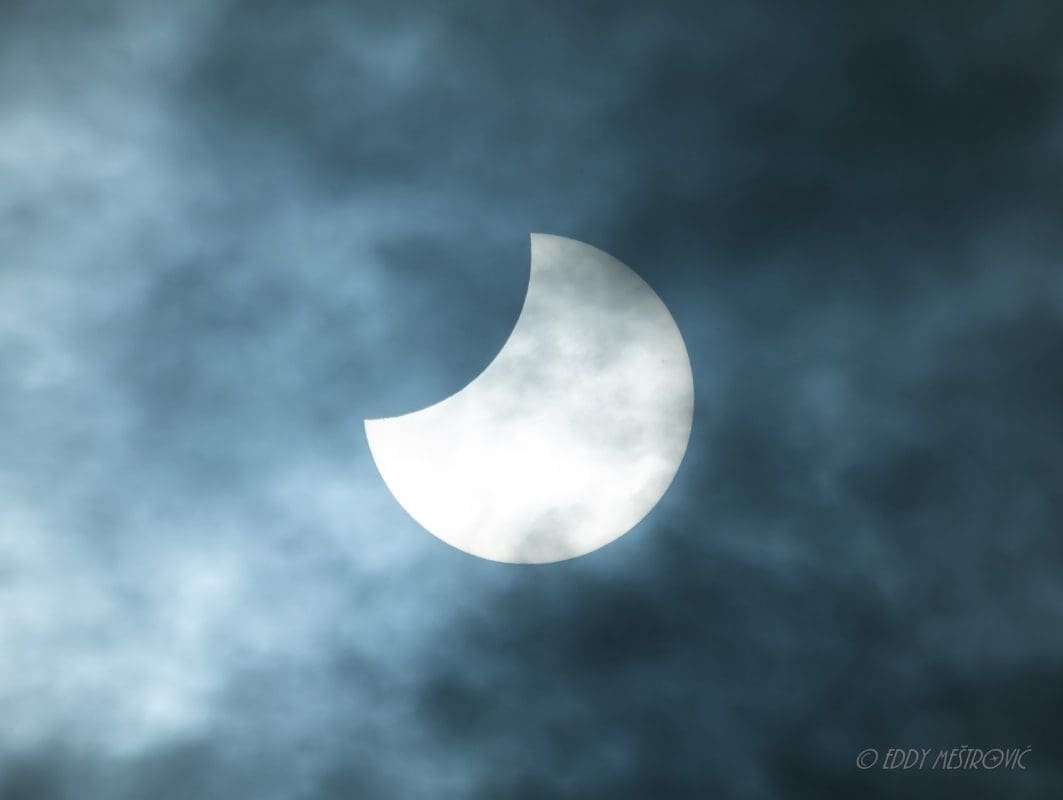 Mjesec je svojom površinom, gledano iz Hrvatske, bacio sjenu i u maksimumu pomrčine pokrio oko jedne trećine Sunca, a djelomična pomrčina će trajala je 2 sata i 3 minute.