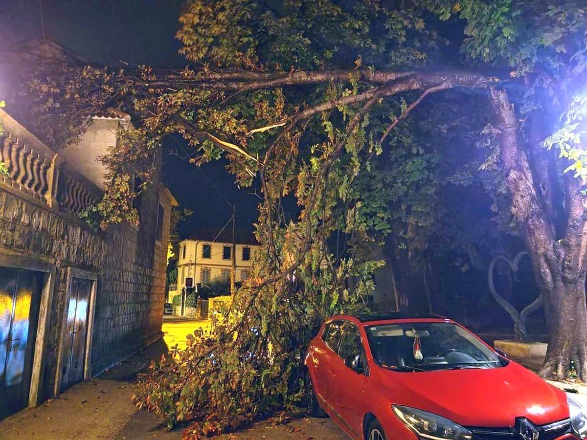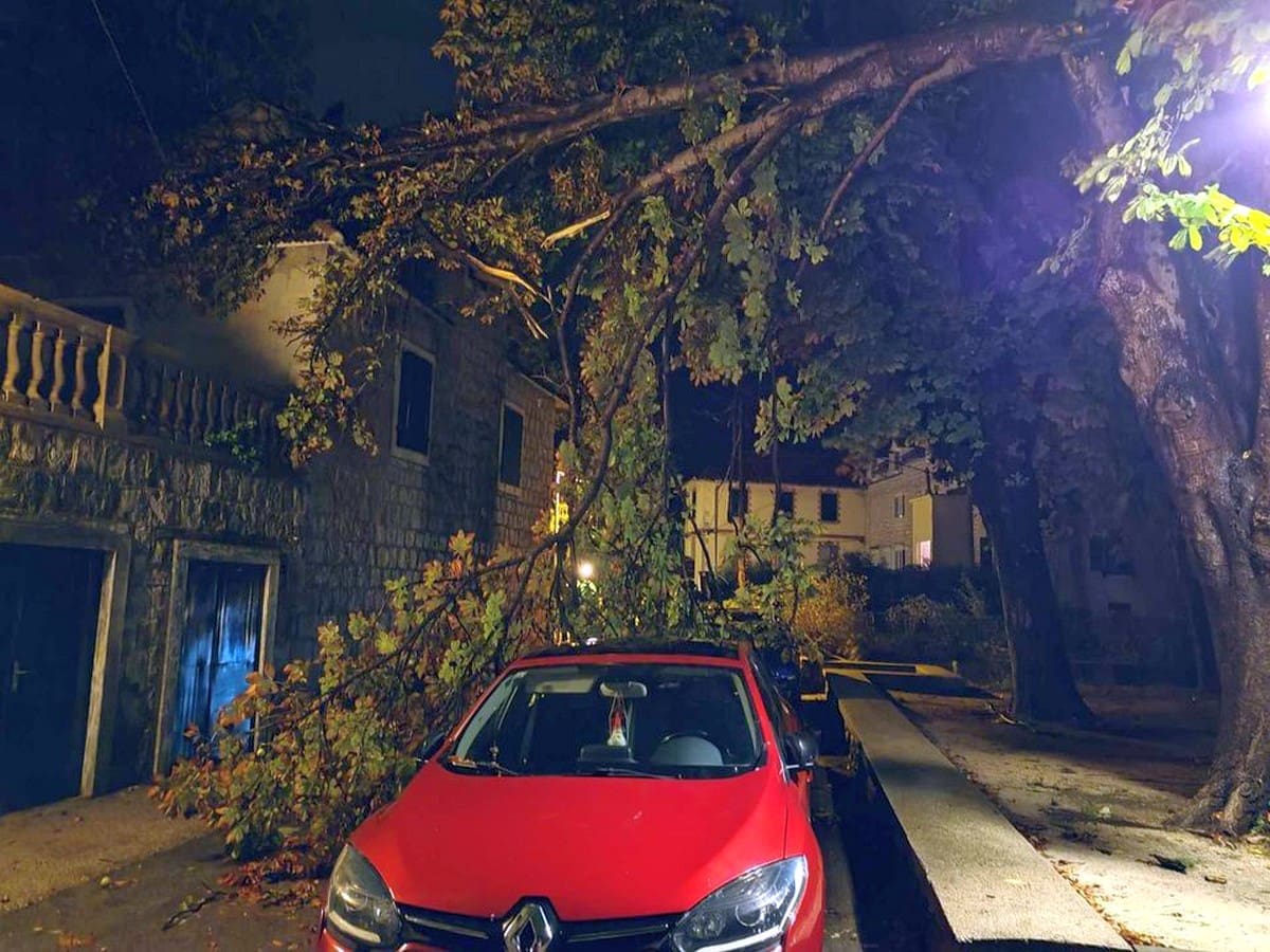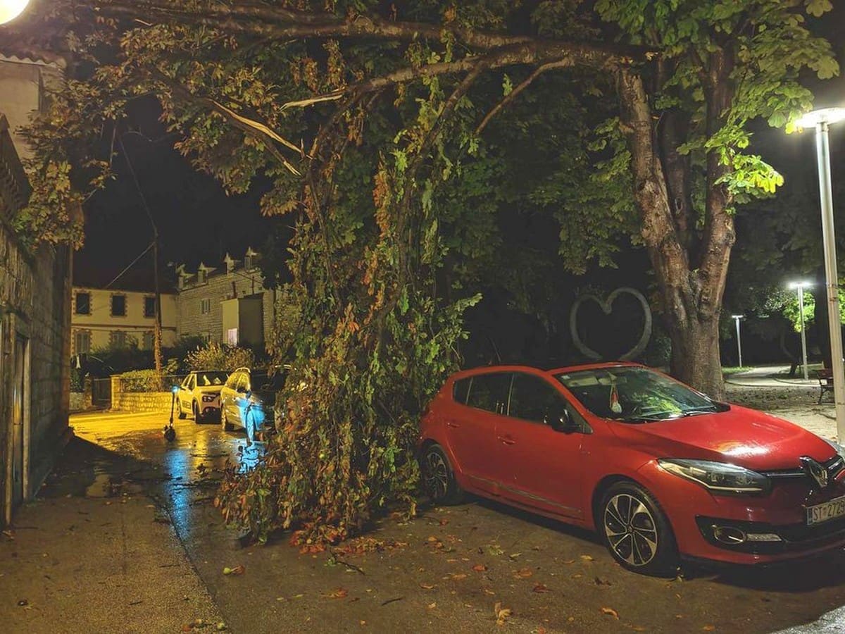 Polomljen je veliki broj grana koje su samo sreća i kuća preko puta spriječile da ne naprave veću štetu na tu parkiranim automobilima, piše portal Grada Kaštela.