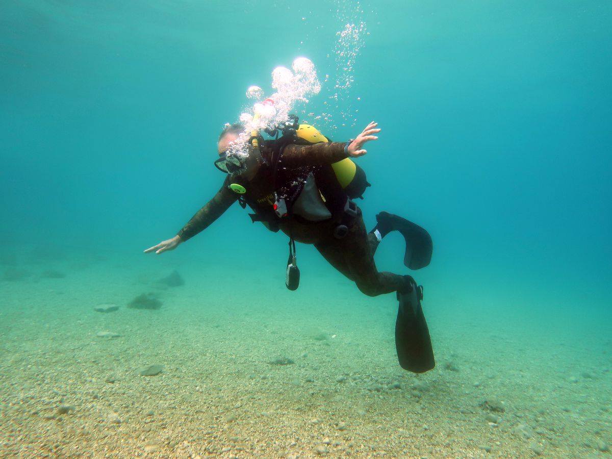 Nakon pedesetak metara ronjenja uz obalu, stignemo do ostataka broda koji su na pješčanom dnu na dubini od 3 do 15 metara.