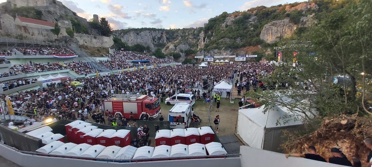 21:08 - Iako je početak koncerta bio najavljen u 20 sati, doznajemo da su kolone još uvijek duge od Grubima do Imotskog. Ispred ulaza na stadion još uvijek horde ljudi čekaju na ulazu.