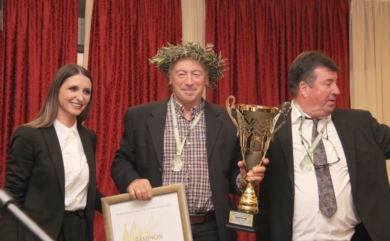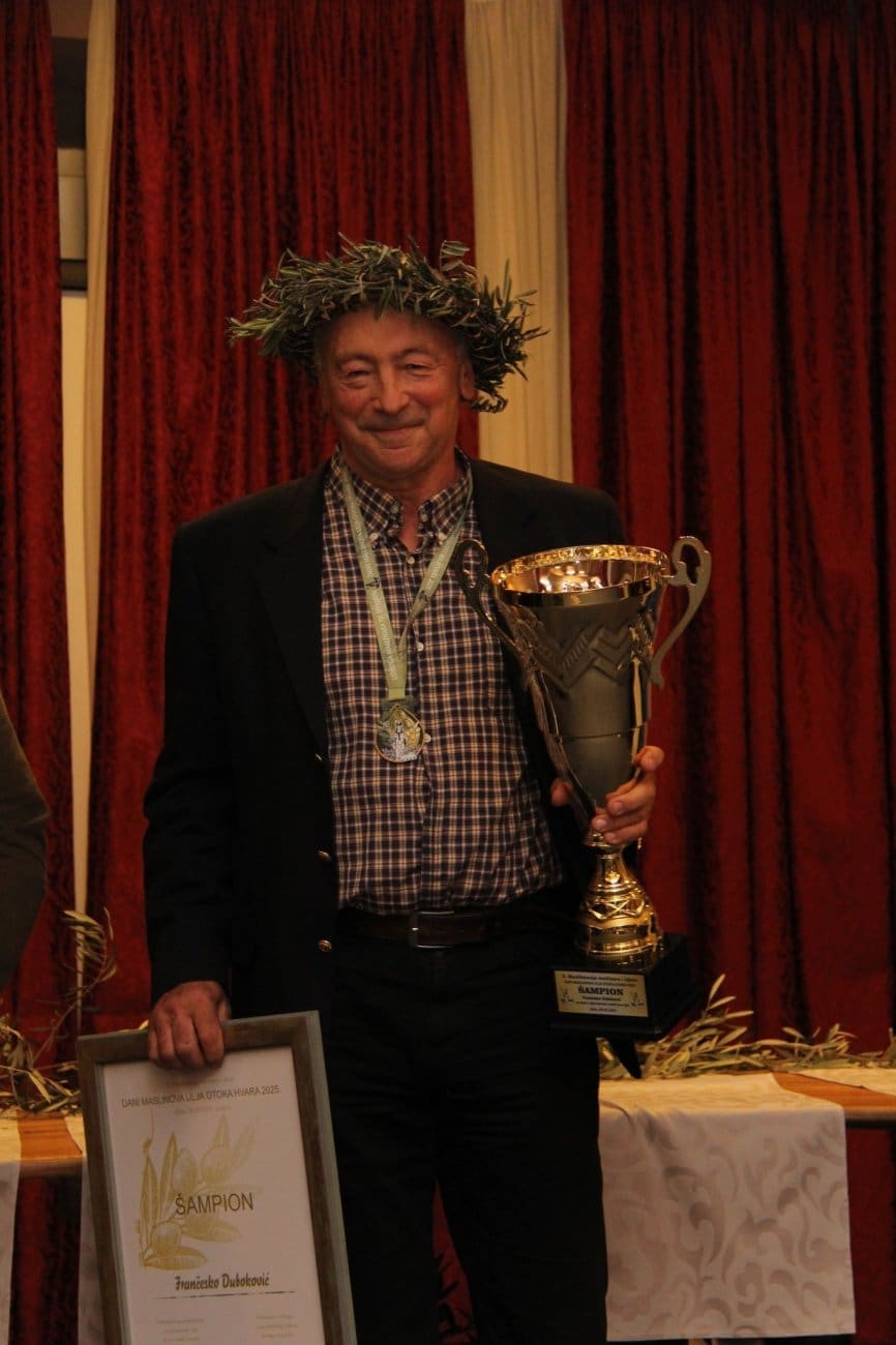 U svečanoj dvorani Općinskog doma u Jelsi održana je dodjela nagrada povodom 10. manifestacije "Dani maslinova ulja otoka Hvara 2025". Prema rezultatima kemijske i senzorske analize, koju je proveo Institut za jadranske kulture i melioraciju krša iz Splita, Frančesko Duboković iz Jelse proglašen je šampionom u dvije kategorije: ekstra djevičanskog maslinovog ulja s ocjenom 99,38 bodova te ekstra djevičanskog ekološkog maslinovog ulja.