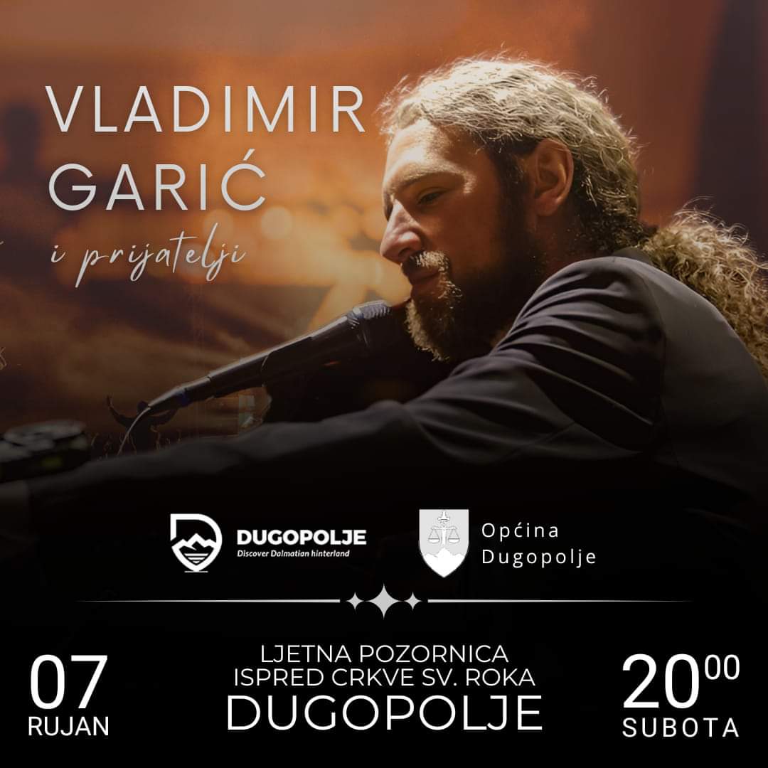 Općina Dugopolje poziva vas na gala koncert 'Večer pod zvijezdama' koji se održava ovu subotu, 7. rujna, na ljetnoj pozornici ispred crkve sv. Roka. Nastupit će svestrani dalmatinski tenor, Vladimir Garić, a pridružit će mu se prijatelji: sopran Kiara Generalić i bas Božo Župić, dok će glazbena pratnja biti Ivan Perak.