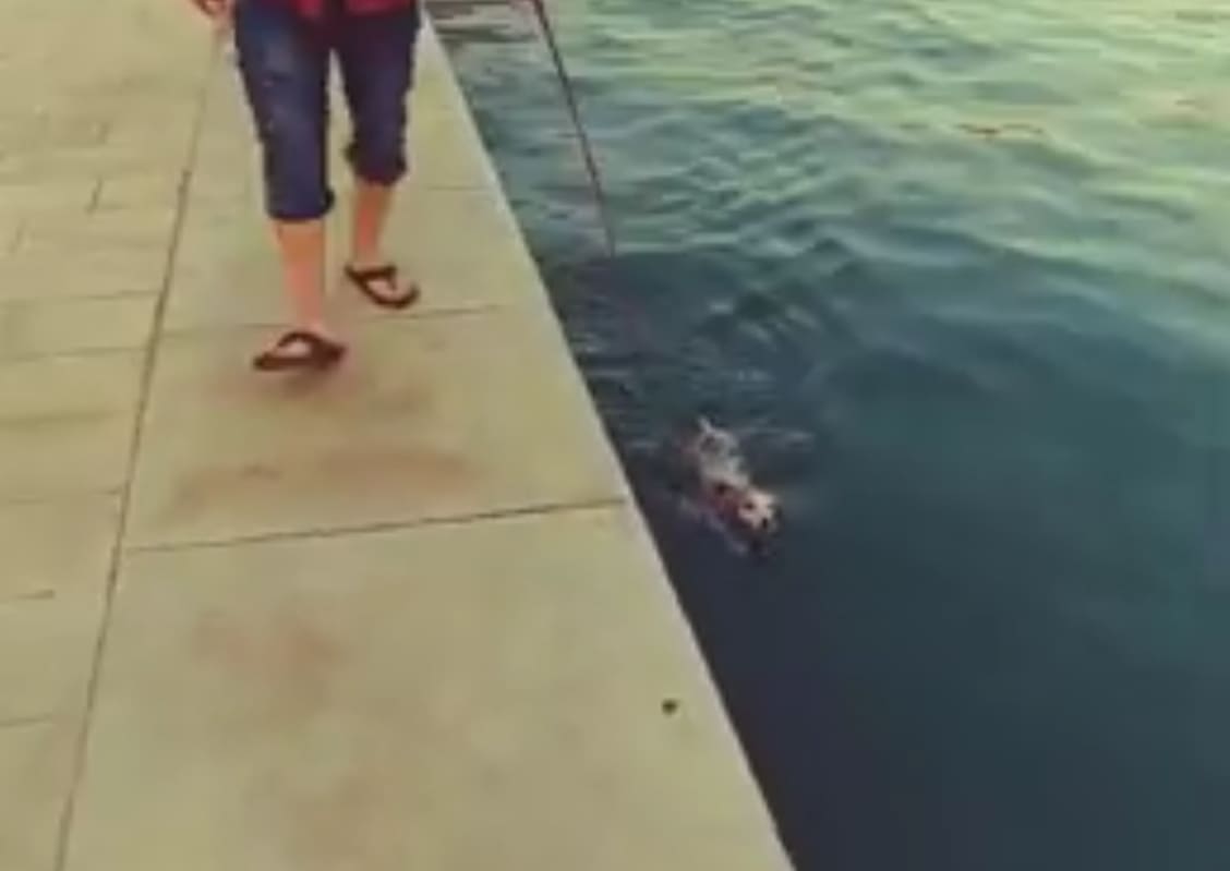 Ovog puta video koji će vas sigurno nasmijati stiže iz Trogira, gdje je naš čitatelj (podaci poznati redakciji), napravio neuobičajen đir Rivom sa svojim psićem.