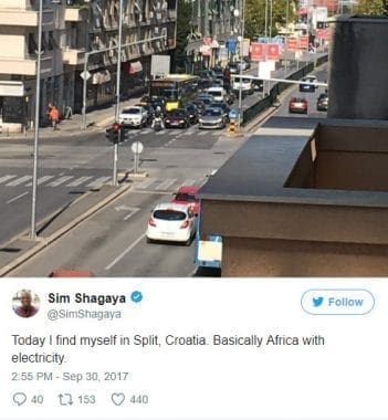 Jedan naš čitatelj čak se prisjetio twita afričkog bogataša Sima Shagaya koji je u rujnu 2017. boravio u Splitu, kada je svoj boravak u Hrvatskoj komentirao riječima: "Načelno, Afrika sa strujom".