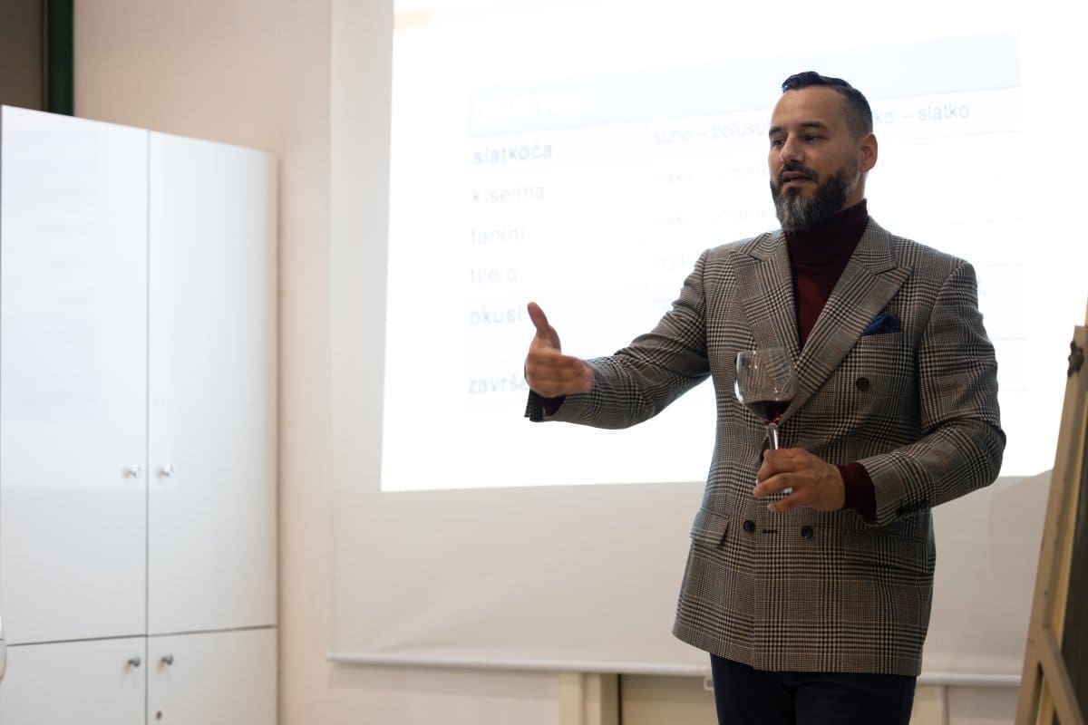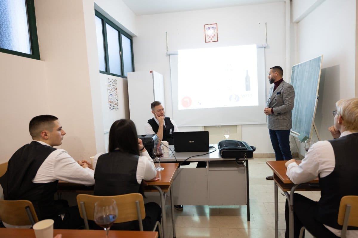 Još jedan bivši učenik strukovne škole, a danas poznati vinski edukator Daniel Čečavac svoju prezentaciju prilagodio je uzrastu učenika. Prisjetio se i svog školovanja –